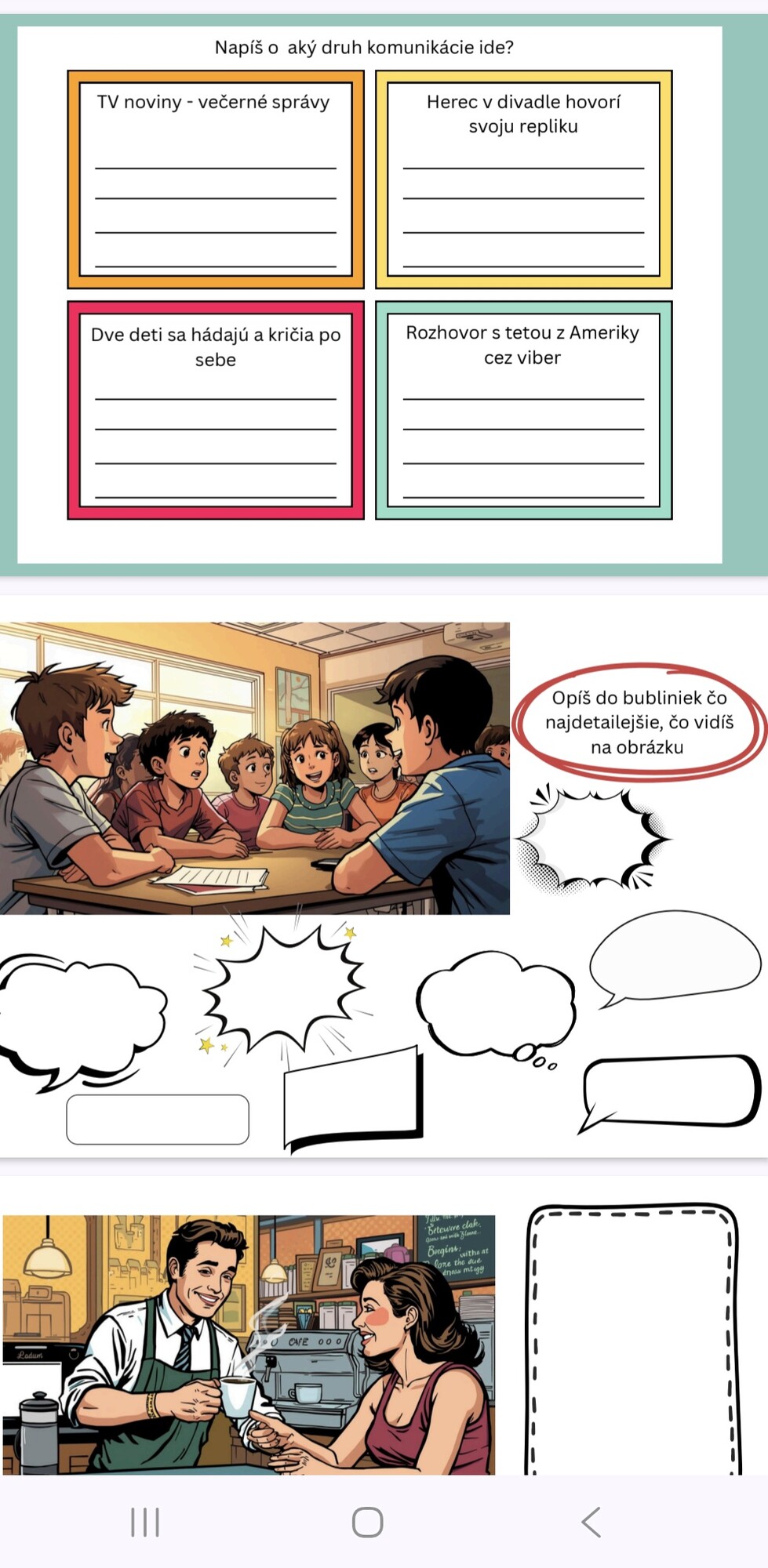- 10 PL - fotografie v komiksovom štýle komunikačných situácií s tvorivými úlohami pre žiakov