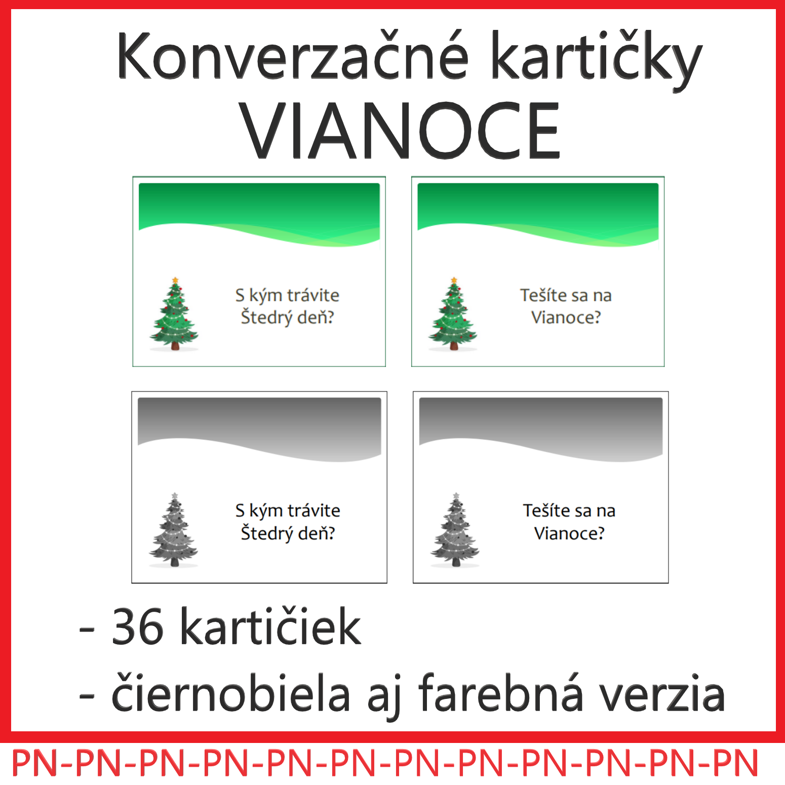 - 36 kartičiek vo farebnej verzii s otázkami na tému VIANOCE