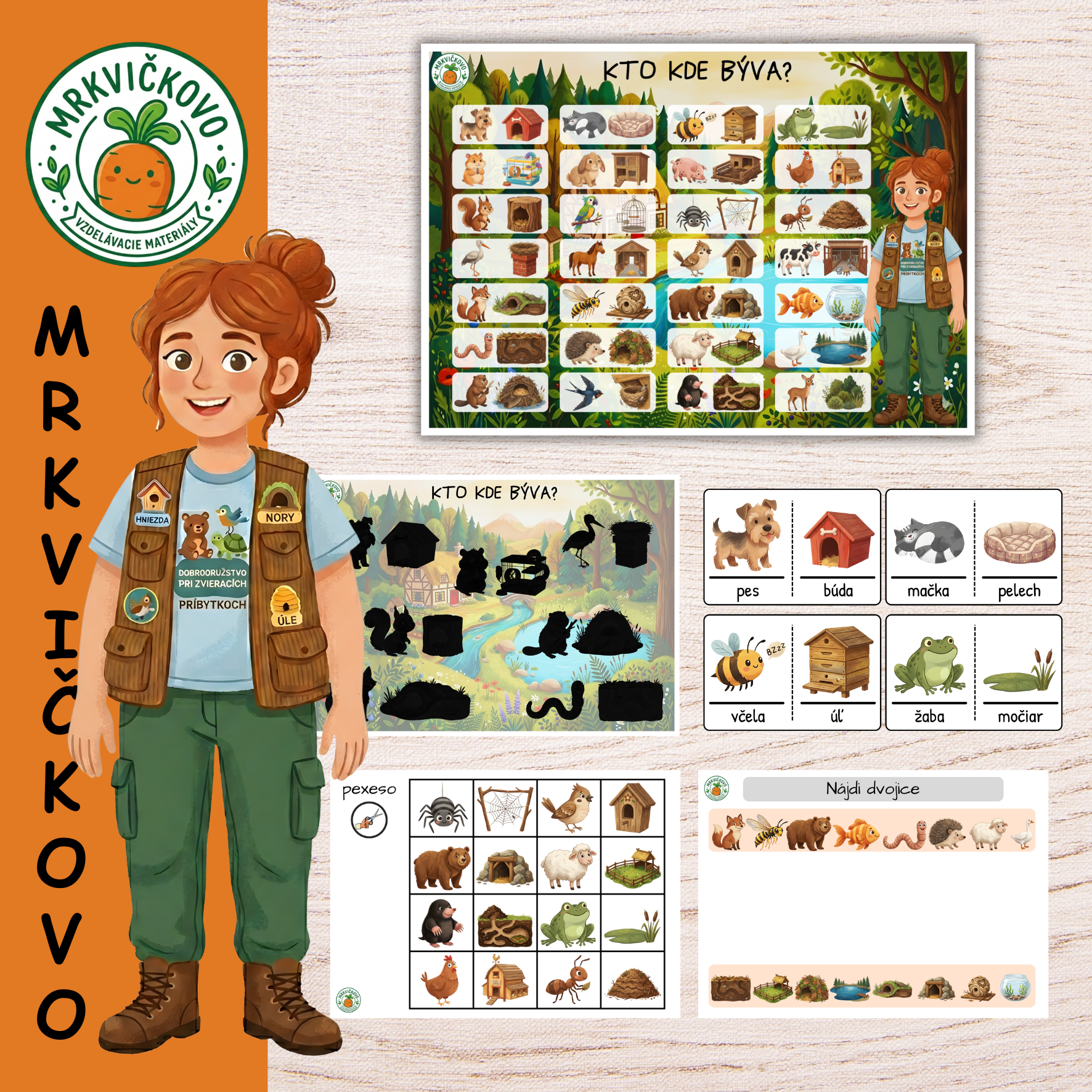 Vedeli ste, že včielka má svoj úľ, ale kde presne býva taký krtko alebo veverička? Pozvite deti do čarovného sveta Mrkvičkova, kde sa z nich stanú malí zoológovia! Tento pestrofarebný súbor aktivít je navrhnutý tak, aby deťom hravou formou vysvetlil, že každý tvor v prírode má svoje špeciálne miesto, ktoré nazýva domovom.