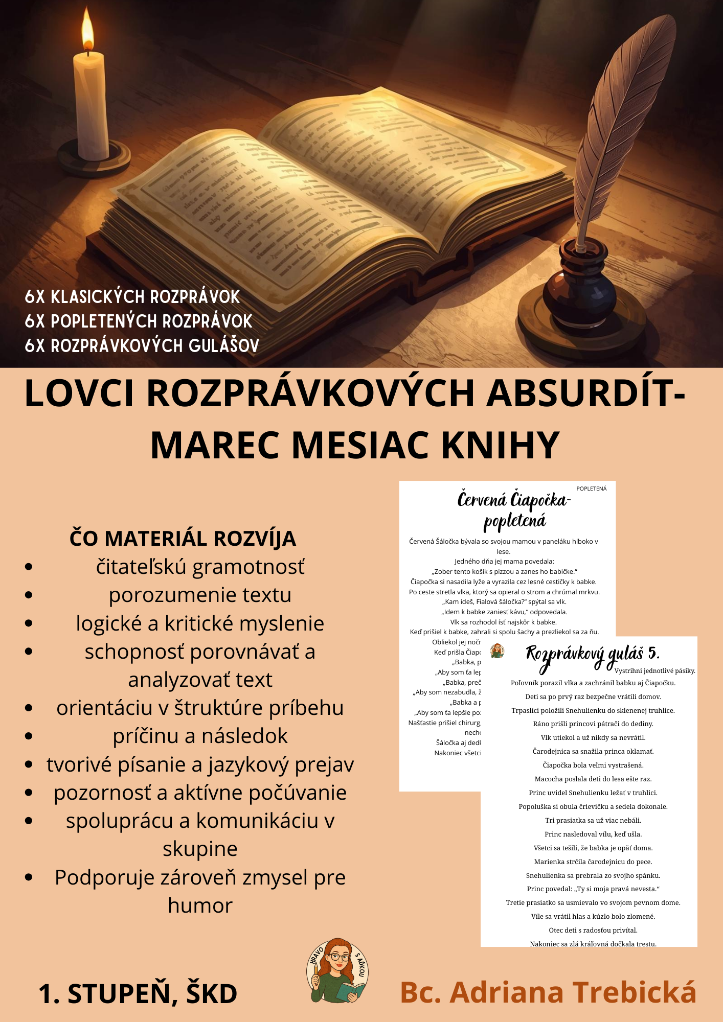 „Lovci rozprávkových absurdít“ sú hravý, no didakticky premyslený materiál, ktorý učí deti čítať pozorne, premýšľať kriticky a odhaľovať nezmysly v texte.