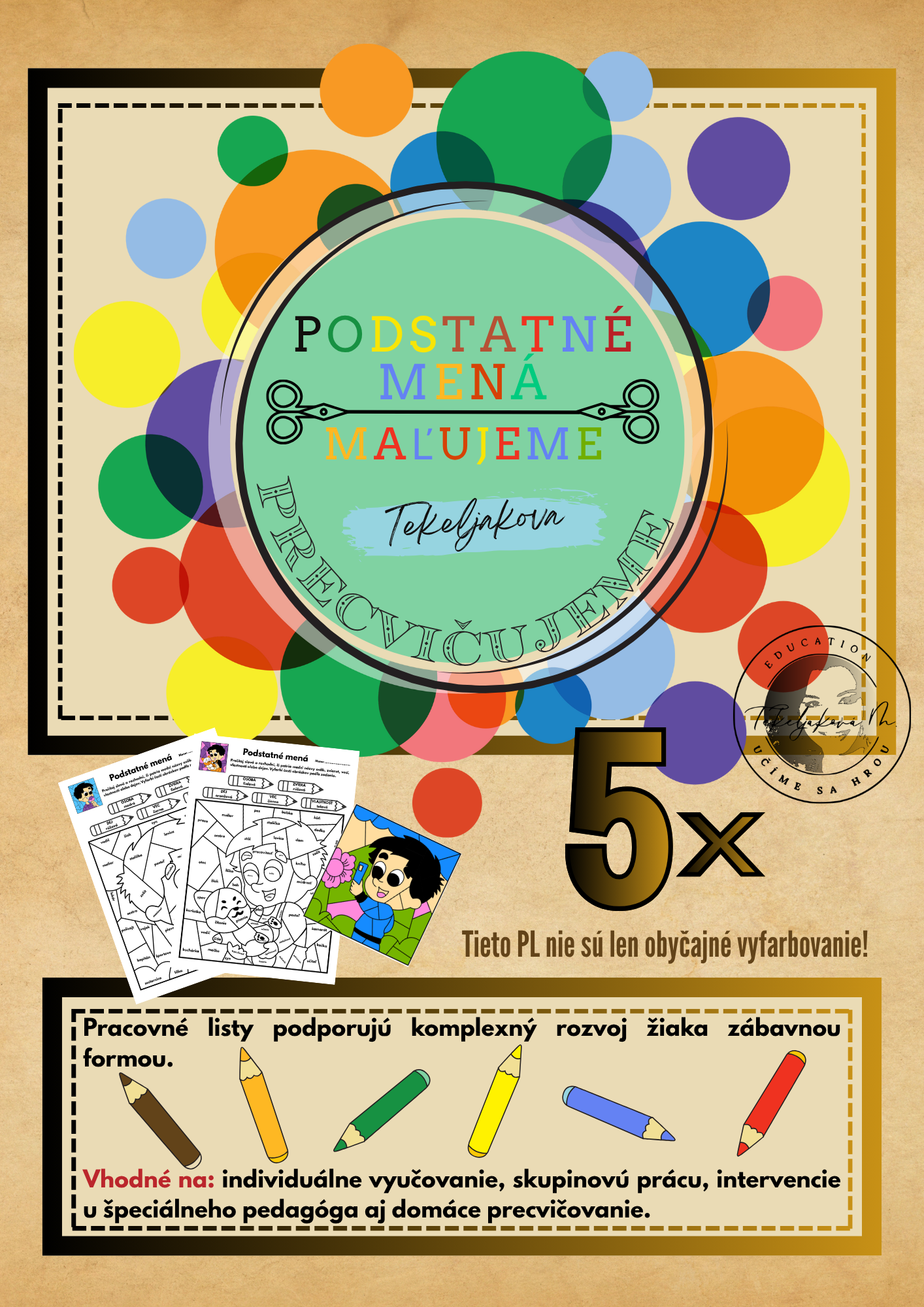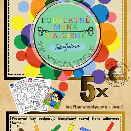 - Jazykové a komunikačné schopnosti – rozlišovanie druhov podstatných mien (osoba, zviera, vec, vlastnosť, dej).