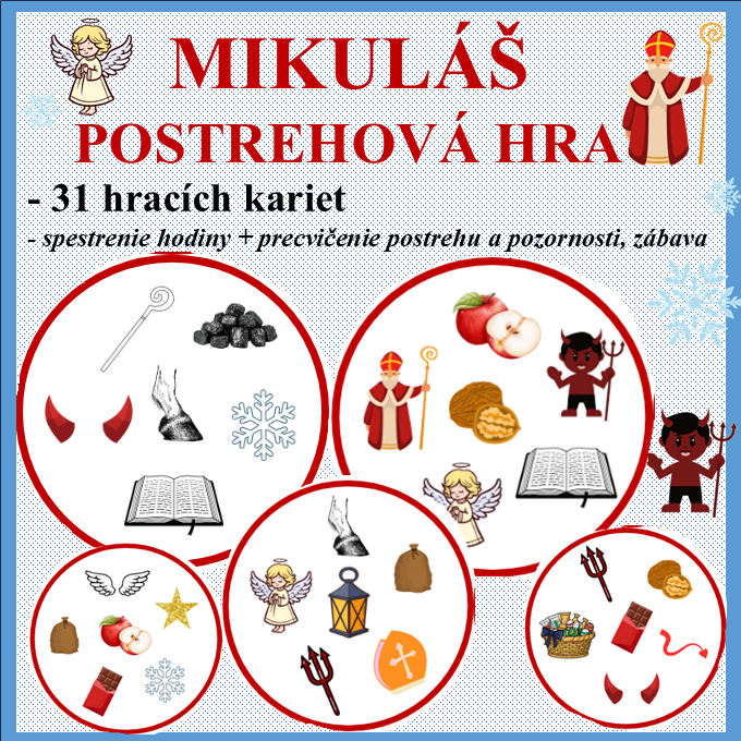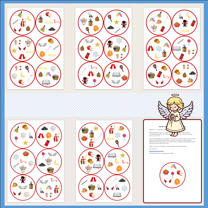 Materiál obsahuje 6 strán A4 s celkovo 31 kartičkami, na ktorých je vždy 6 obrázkov s mikulášskou tematikou. Hru využijú najmä učitelia v MŠ, deti v školskom klube alebo rodičia doma so svojimi deťmi.