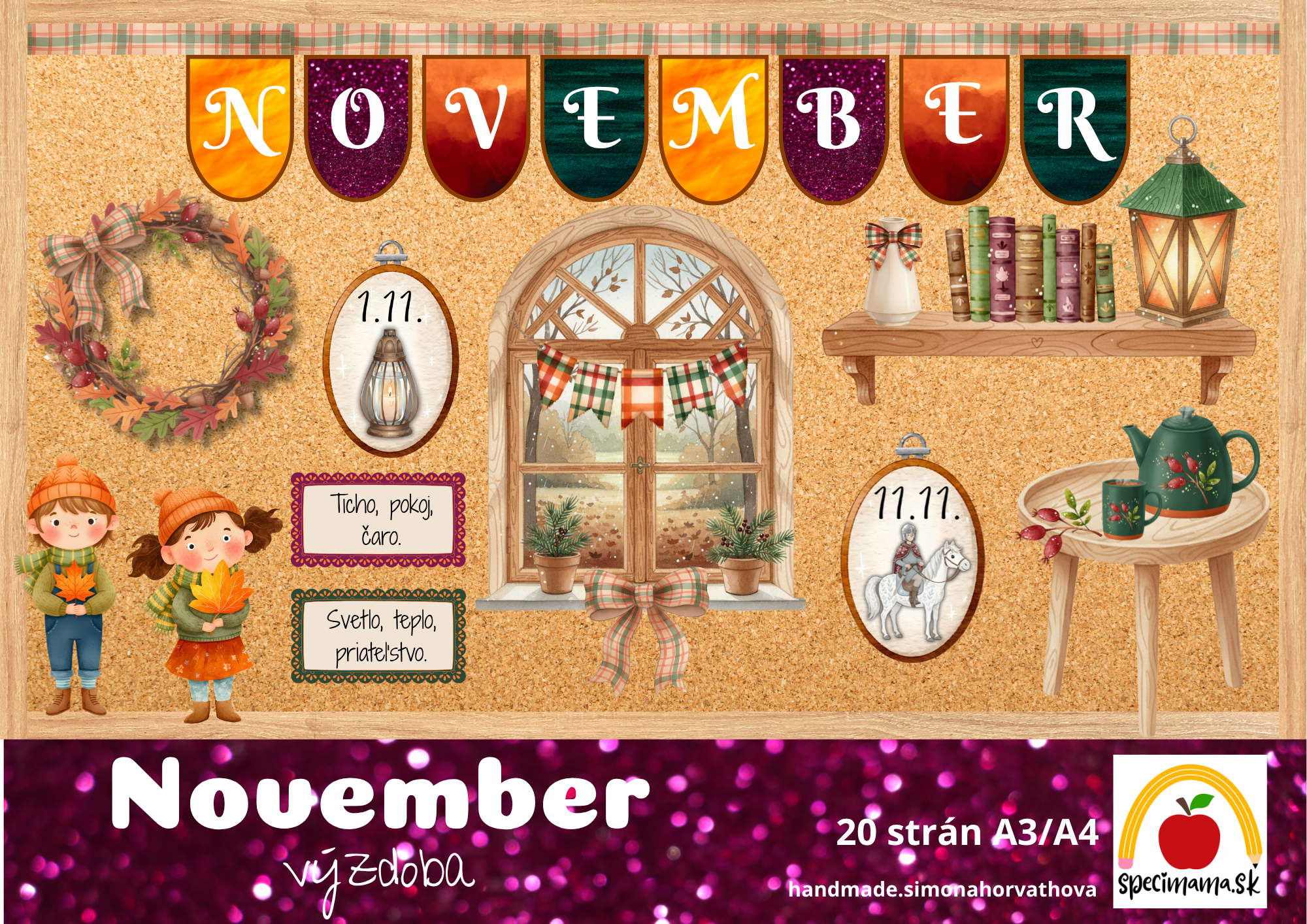 Oživte triedu novembrovou výzdobou plnou jesенného tepla a útulnej atmosféry! Sada NOVEMBER prinesie do vašej učebne originálne vizuály a pokojné posolstvo pre vašich žiakov.
