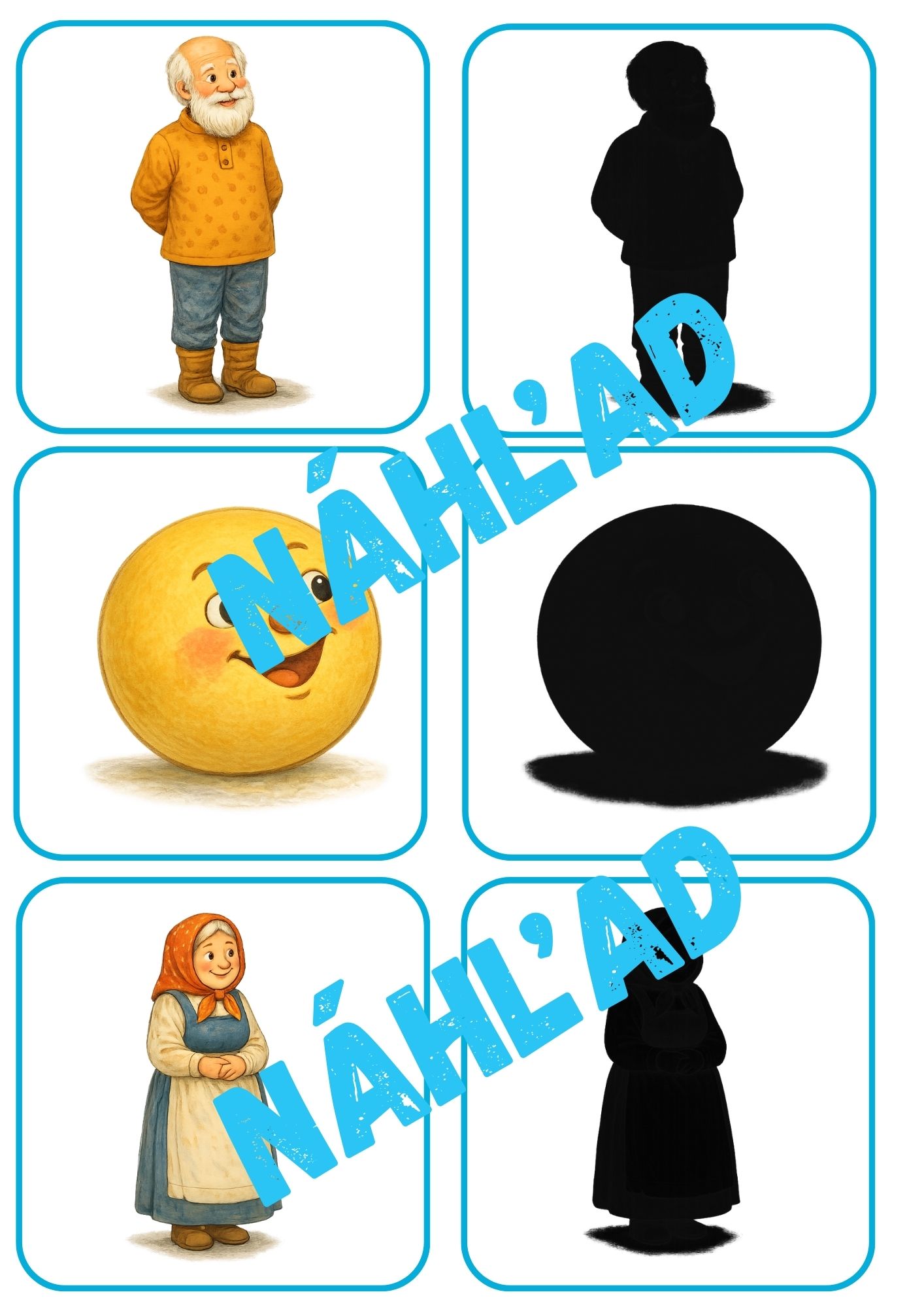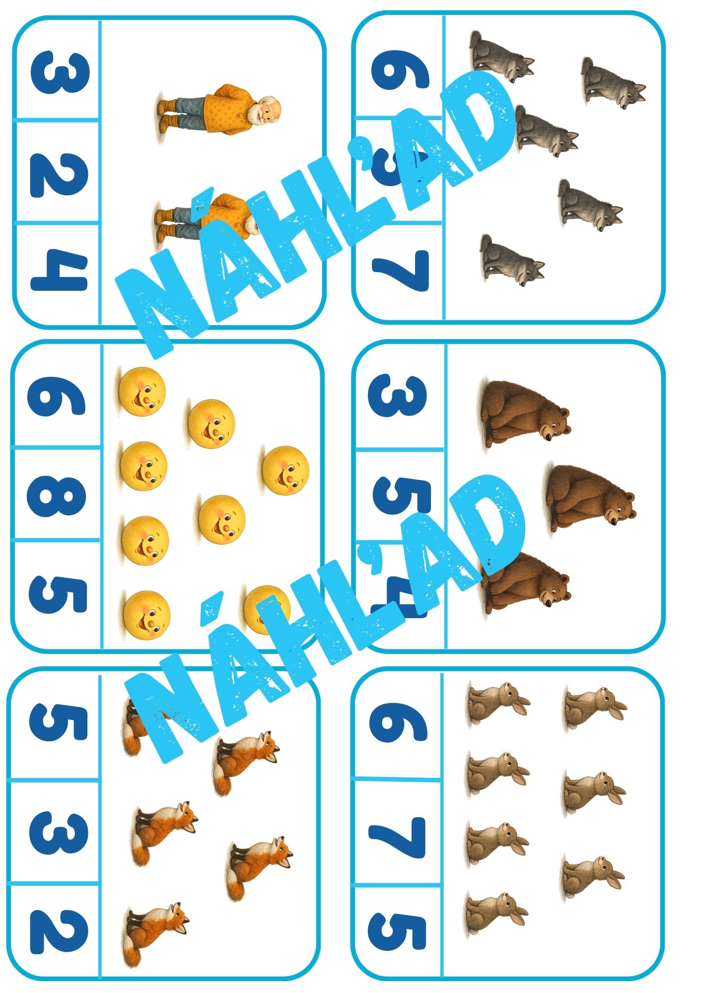 - Dejové karty: Obrázky zachytávajúce postup deja, vďaka ktorým sa deti učia časovú postupnosť (čo bolo skôr a čo neskôr).