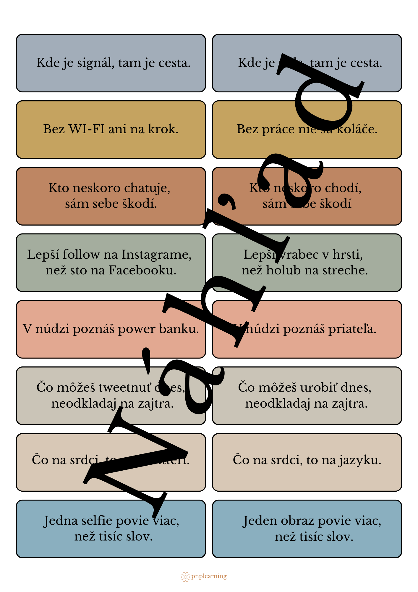 Žiaci majú za úlohu spojiť moderné príslovia s klasickými.