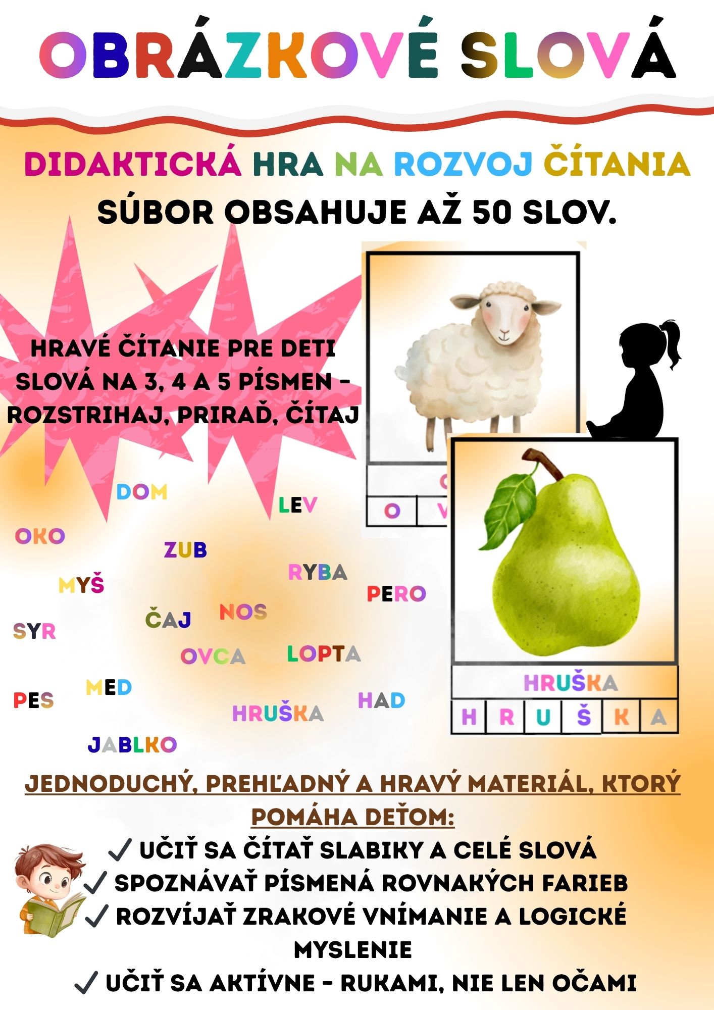 Materiál je výborný na rozvoj reči a hravé čítanie.