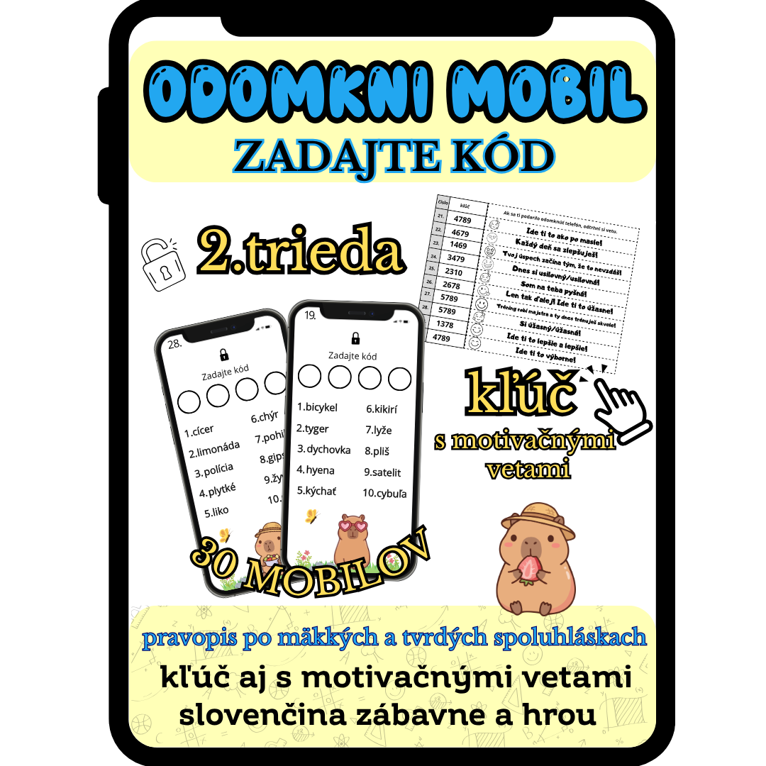 Súbor obsahuje 30 mobilov, návod, kľúč aj s motivačnými vetami.