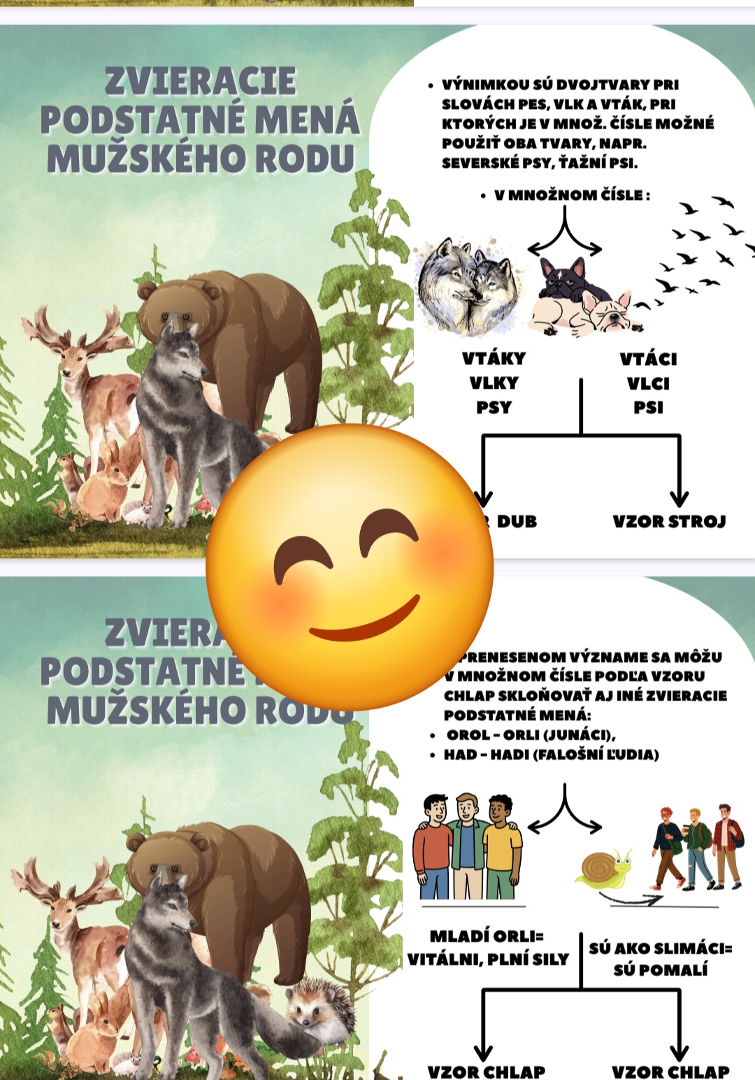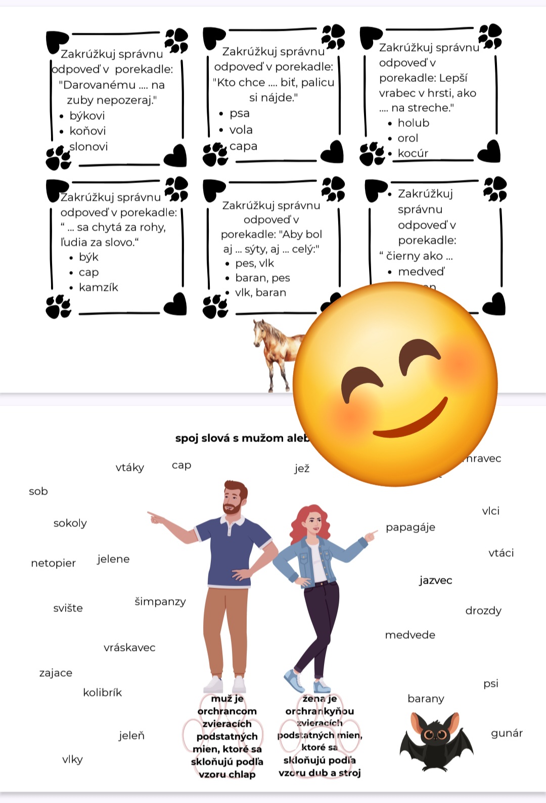 - Materiál je zameraný na precvičenie zvieracích podstatných mien mužského rodu