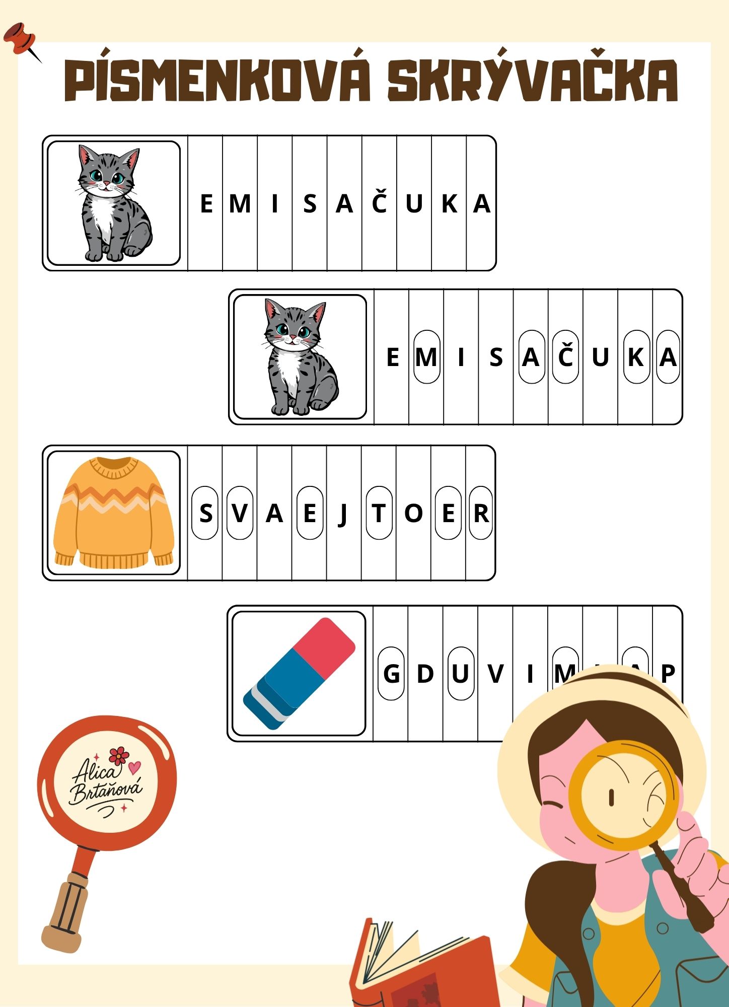 Úlohou žiaka je podľa obrázku nájsť všetky písmená, ktoré sa v danom slove nachádzajú.