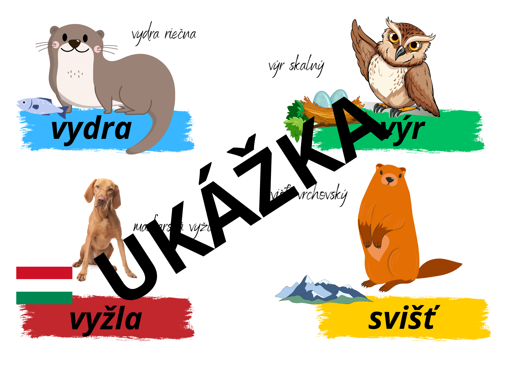 Materiál obsahuje 46 kartičiek s obrázkom a 3 slovami. Úlohou žiakov je prečítať si všetky tri možnosti a vyfarbiť