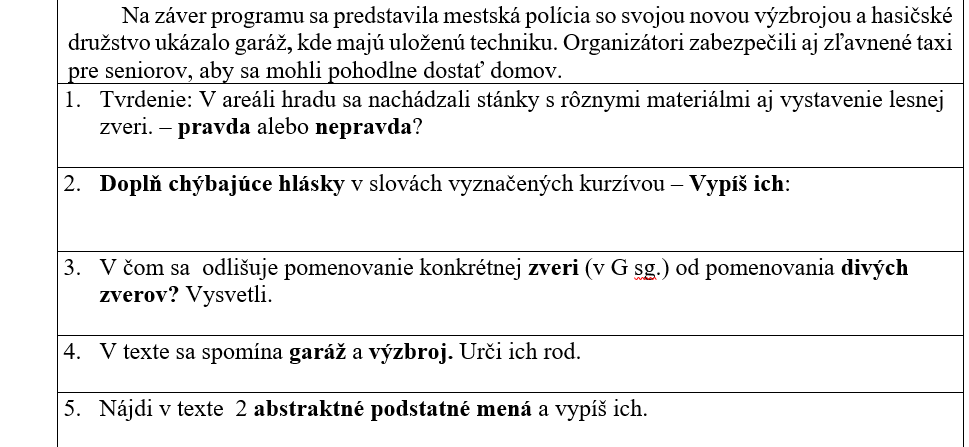 Materiál má zároveň charakter testu aj pracovného listu – žiaci si overia nielen vedomosti, ale aj schopnosť pracovať s textom. Na konci sa nachádza časť sebahodnotenie, kde si žiak označí, čo zvládol, kde mal ťažkosti, aké má silné stránky a na čom chce pracovať.
