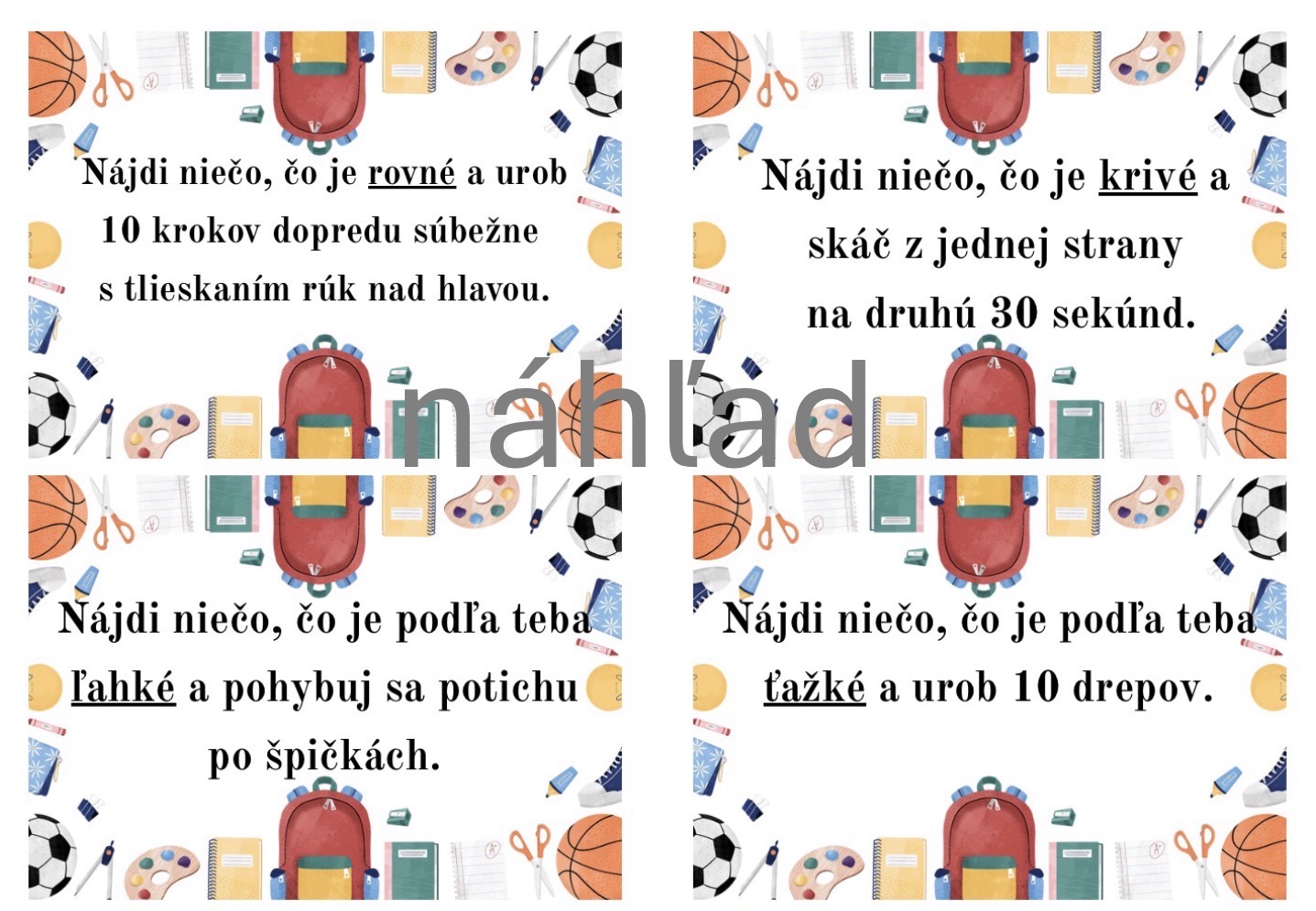 Pohybové kartičky - Nájdi v triede niečo……