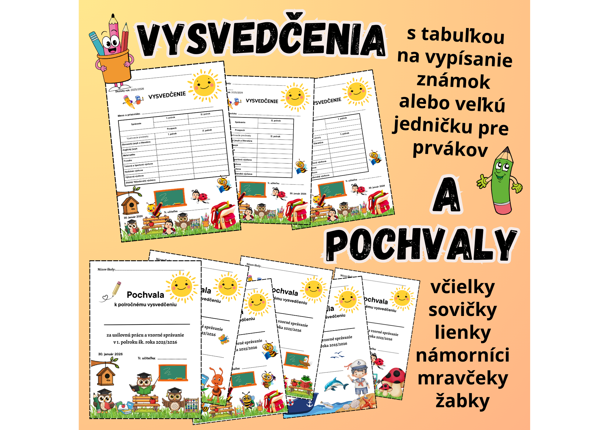 ✏️Vysvedčenia: s tabuľkou na vypísanie známok alebo na veľkú jedničku pre prvákov