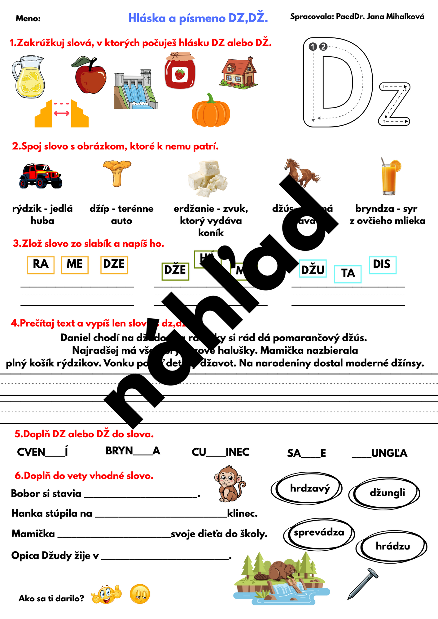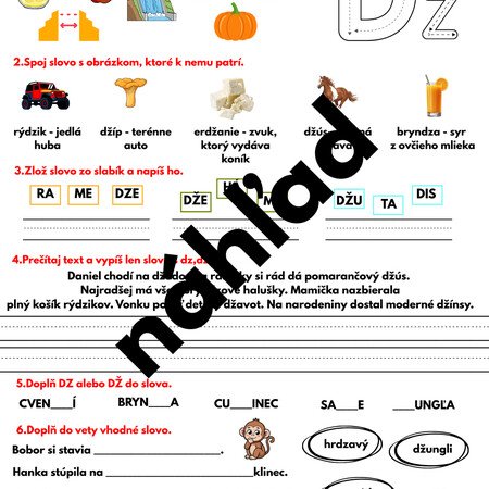 a upevňovanie písmen: F, G, DZ,DŽ, koncovka - OU, Ĺ, ô, ä .