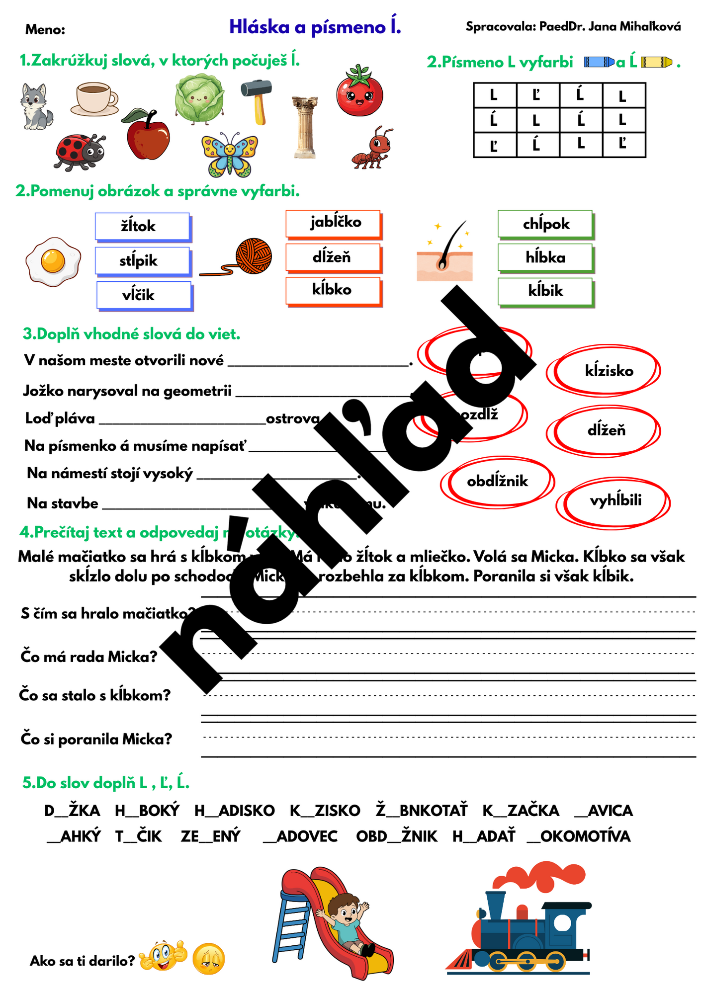 Pracovné listy sú vhodné pre prvý ročník so zameraním na precvičovanie