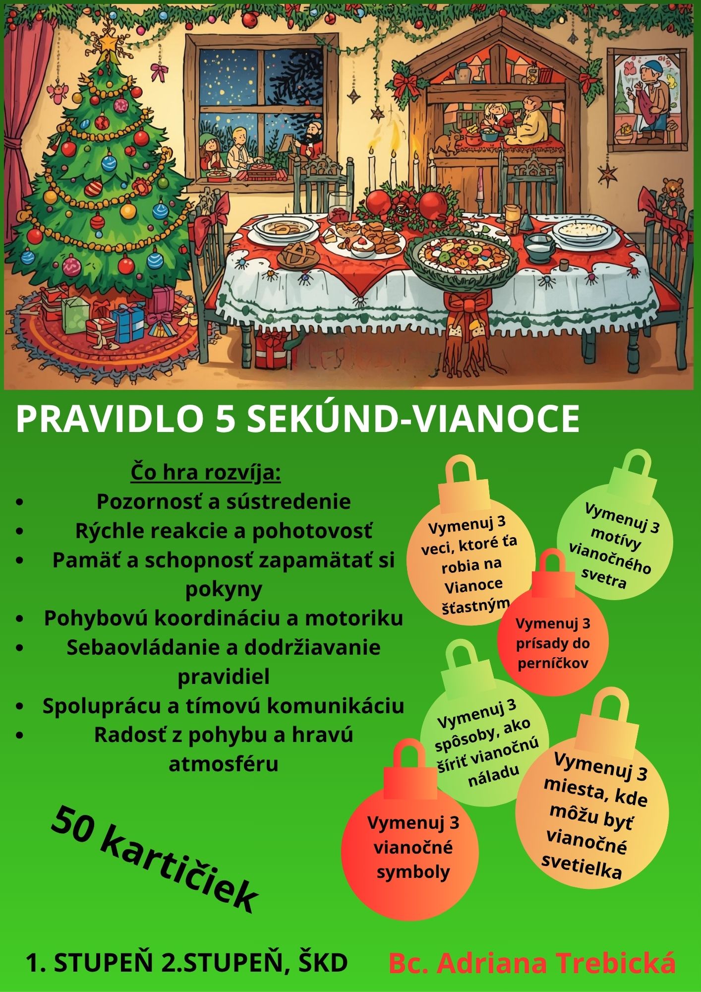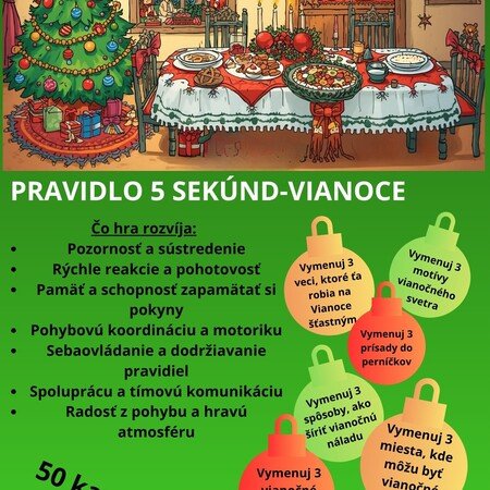 Táto vianočná verzia obľúbenej hry „Pravidlo 5 sekúnd“ prinesie do triedy rýchle reakcie, tvorivosť a kopec zábavy.