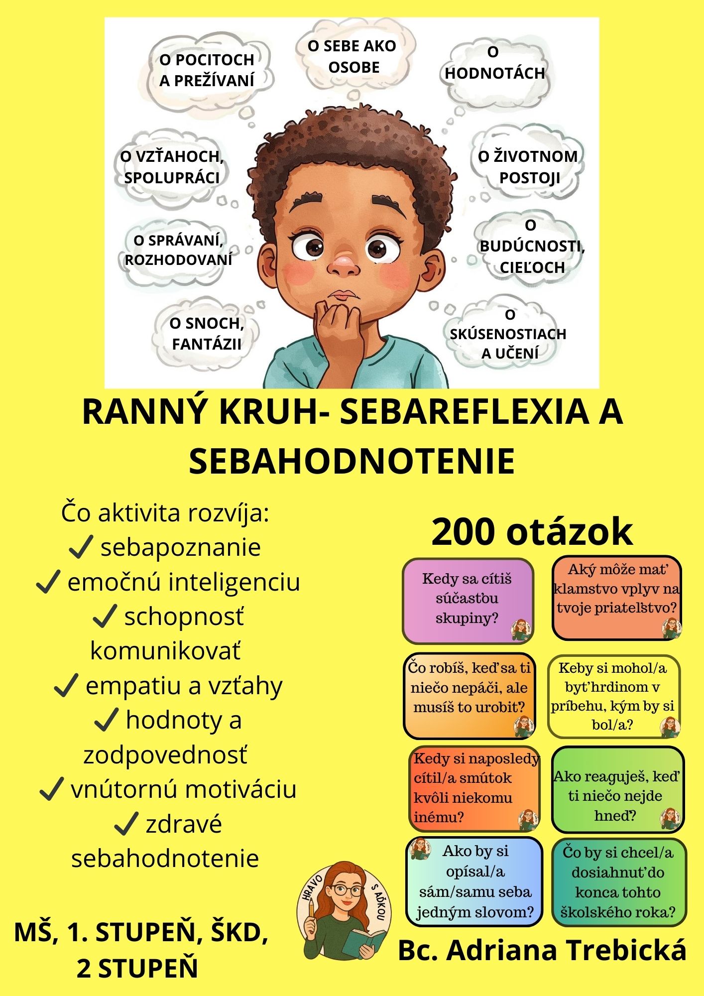 Ranný kruh podporuje deti v vedomom rozpoznávaní a oceňovaní vlastných pocitov, schopností a úspechov, čo vytvára základ pre zdravé sebahodnotenie a pozitívnu triednu klímu.