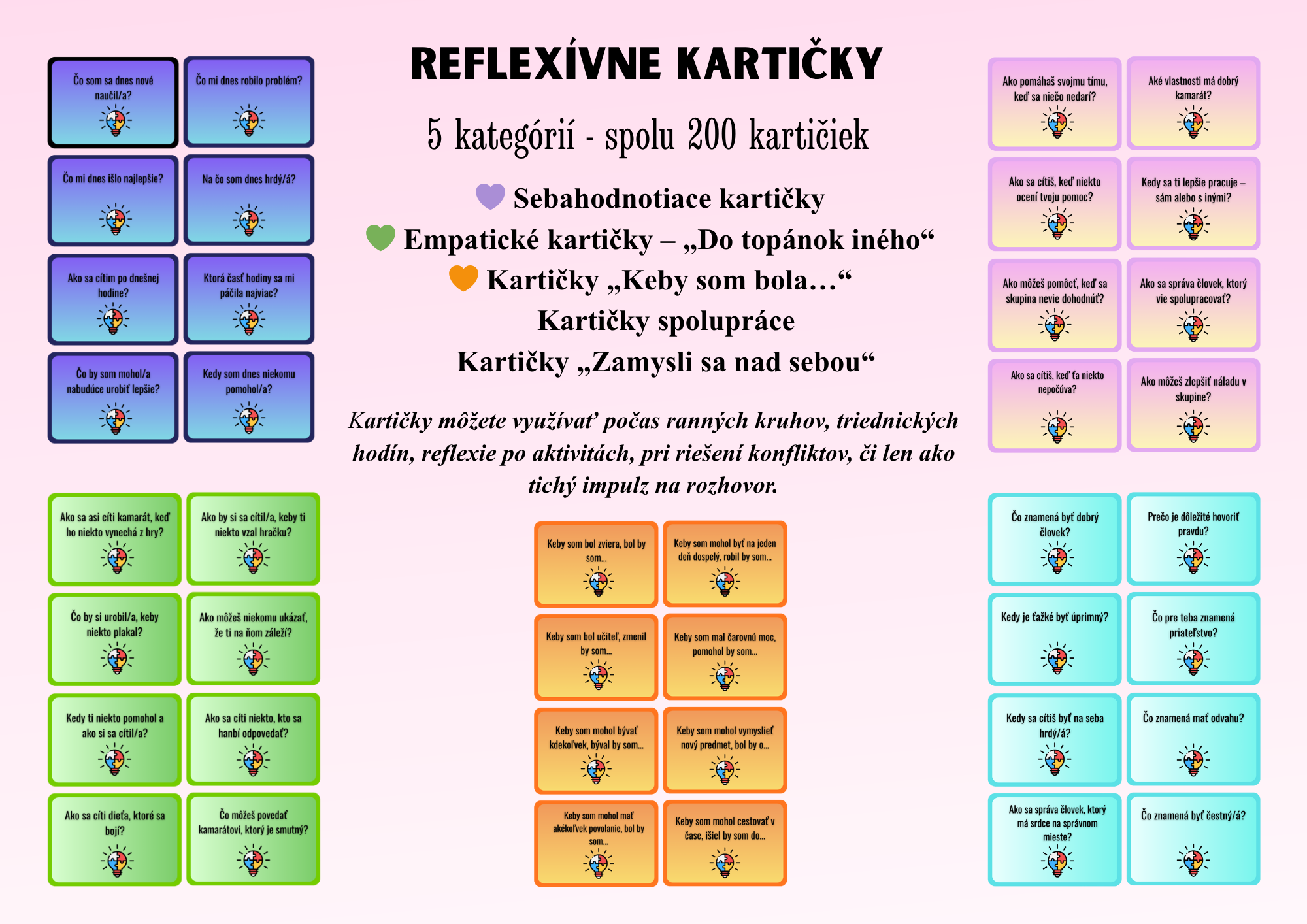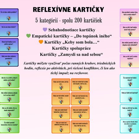 Pomáhajú deťom uvedomiť si, že každý člen skupiny je dôležitý a že spolupráca prináša viac než súťaživosť. Ideálne na triednické hodiny, skupinové projekty či riešenie nedorozumení v kolektíve.