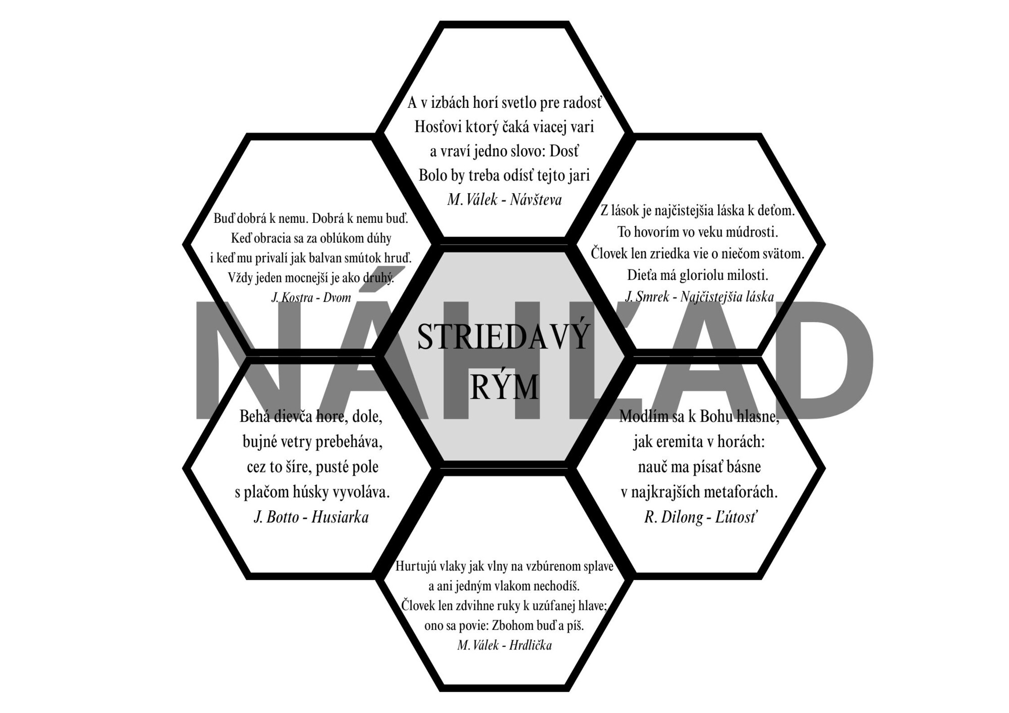 "hexagónový” kvietok - okolo názvu rýmu uložiť všetky strofy, v ktorých je použitý daný rým.