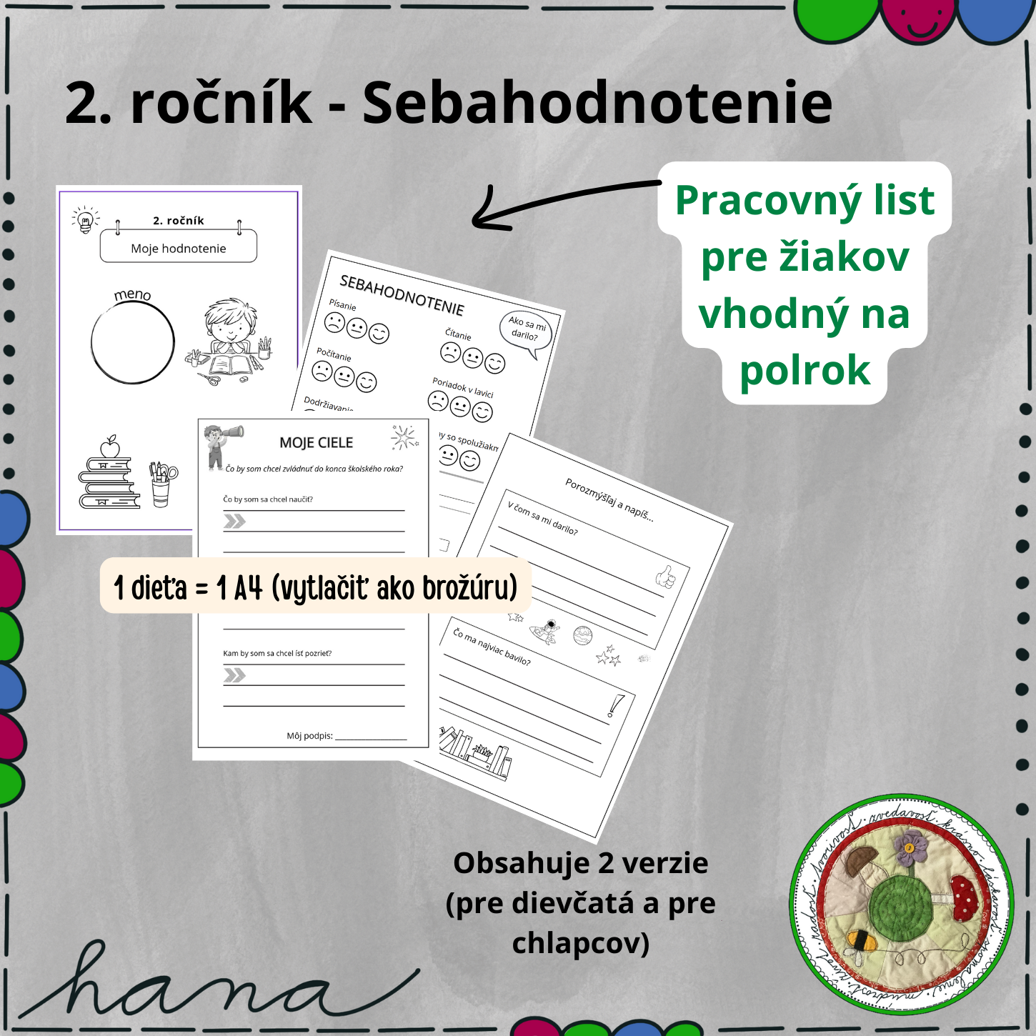 - druhá a tretia strana brožúrky je venovaná spätnému hodnoteniu