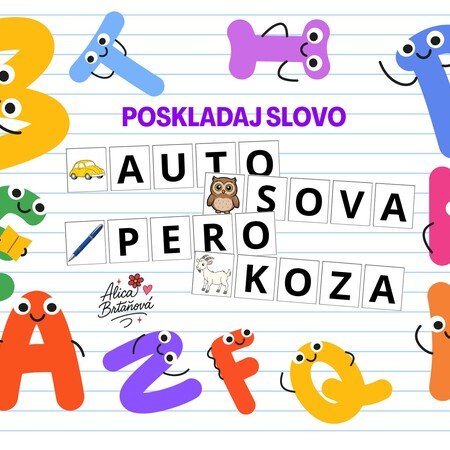 Materiál slúži na precvičovanie zvukovej syntézy. Každý obrázok obsahuje 4 písmená.