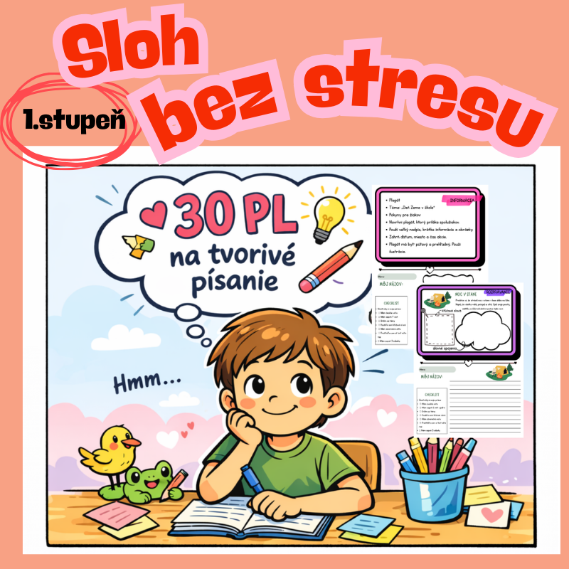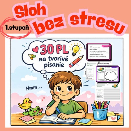 - ✔️ šablóny a osnovy, ktoré deti vedú od prvej myšlienky po hotový text
