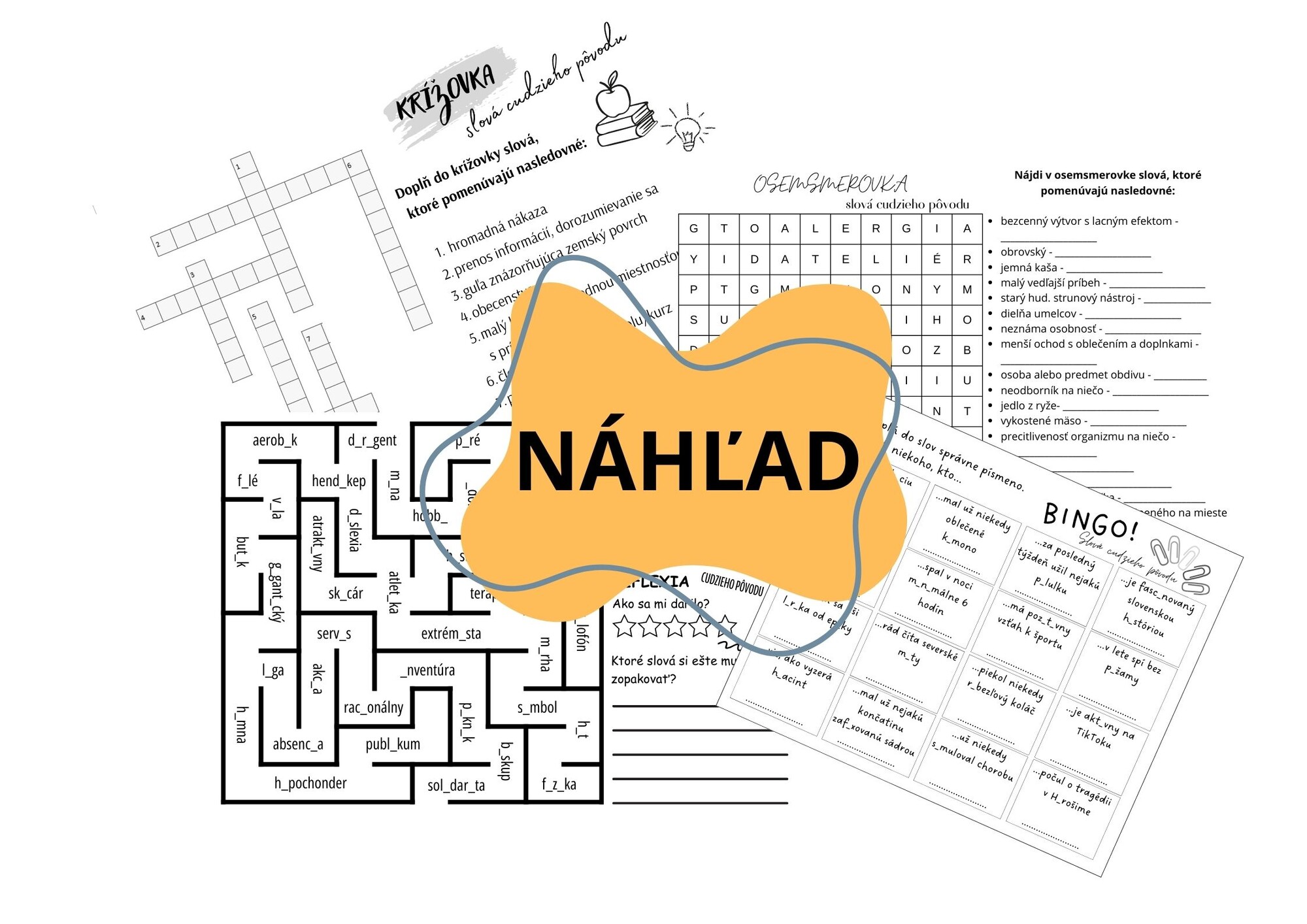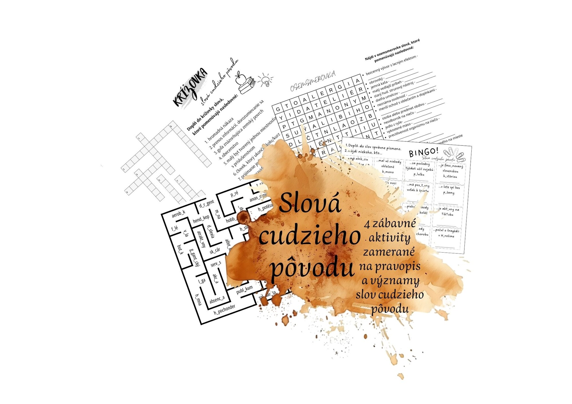 Súbor obsahuje 4 aktivity, prostredníctvom ktorých si žiaci môžu hravou formou precvičiť významy a pravopis slov cudzieho pôvodu. V dokumente nájdete bingo, osemsmerovku, labyrint a krížovku.