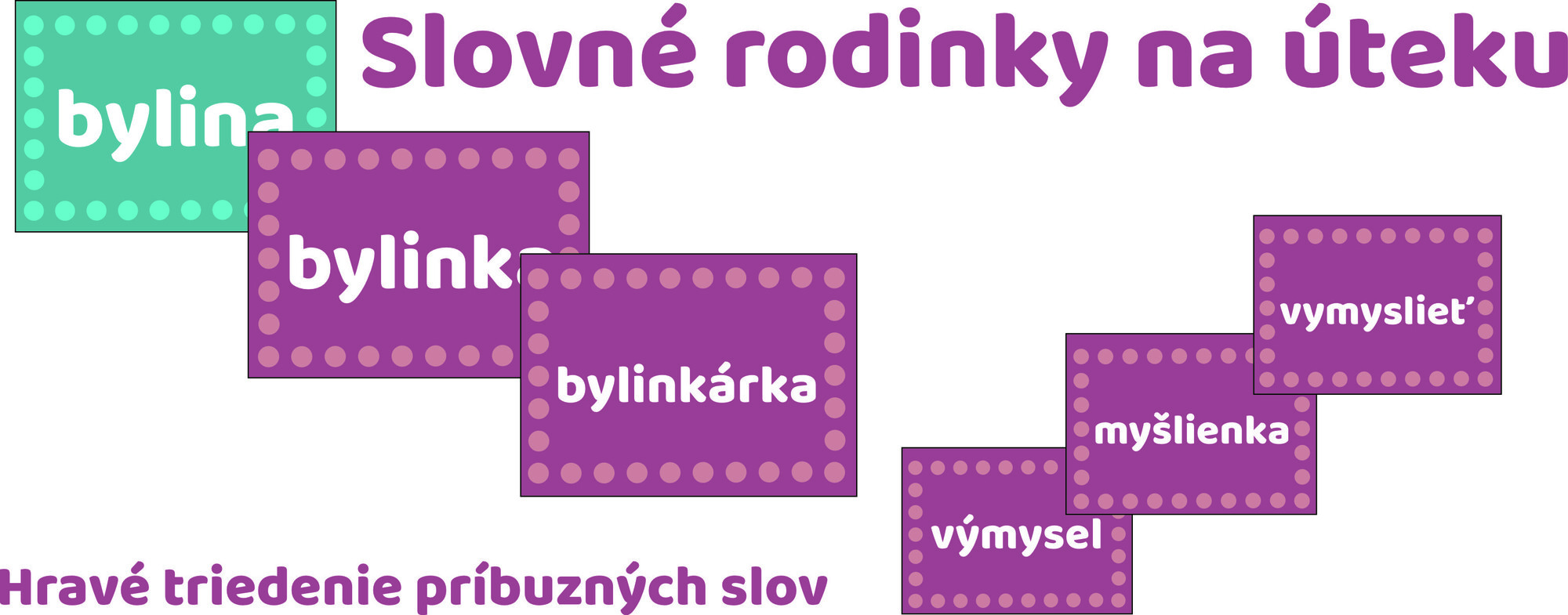 Princíp je jednoduchý꞉ žiaci pracujú s kartičkami príbuzných slov a hľadajú ku ktorej „slovnej rodinke“ ich slovo