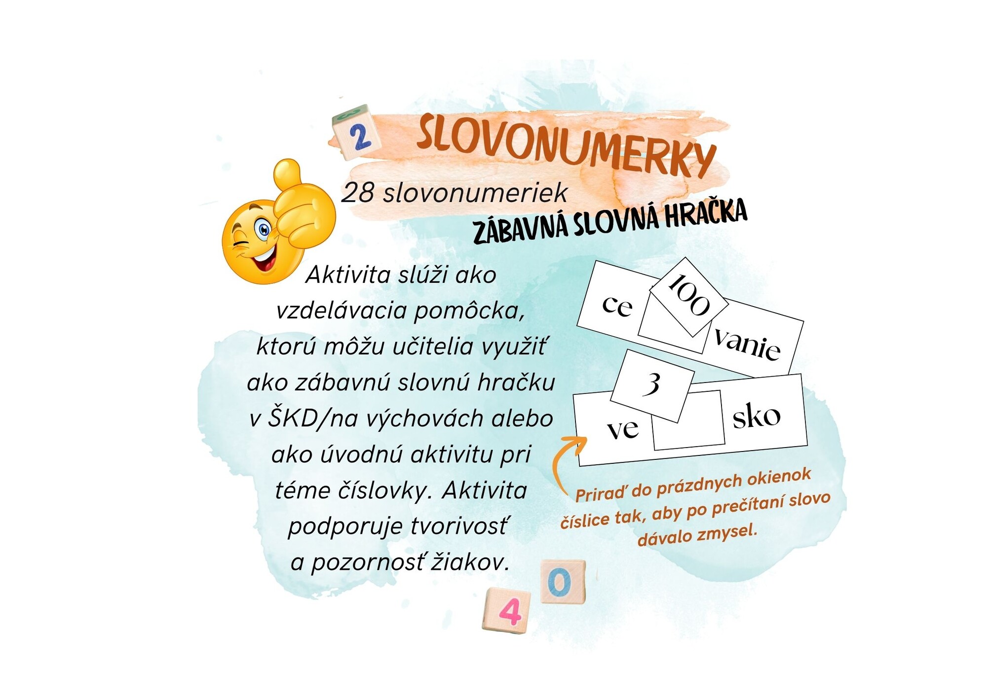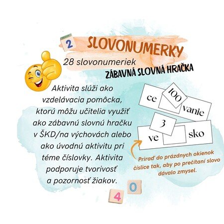 Aktivita podporuje tvorivosť i pozornosť žiakov, je možné ju využiť v ŠKD, na ranných kruhoch i na slovenčine ako úvodnú aktivitu pri téme číslovky.