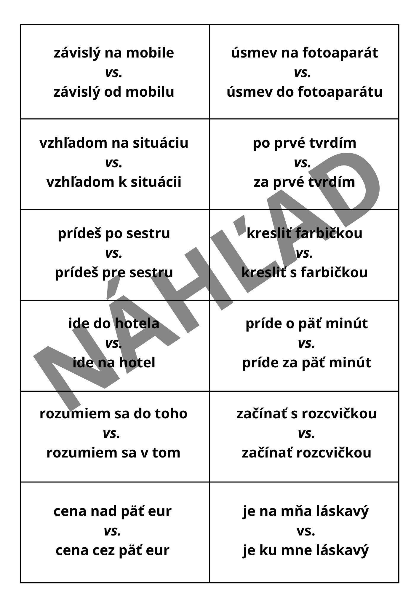 Správnosť predložkových väzieb - autokorektívne kartičky