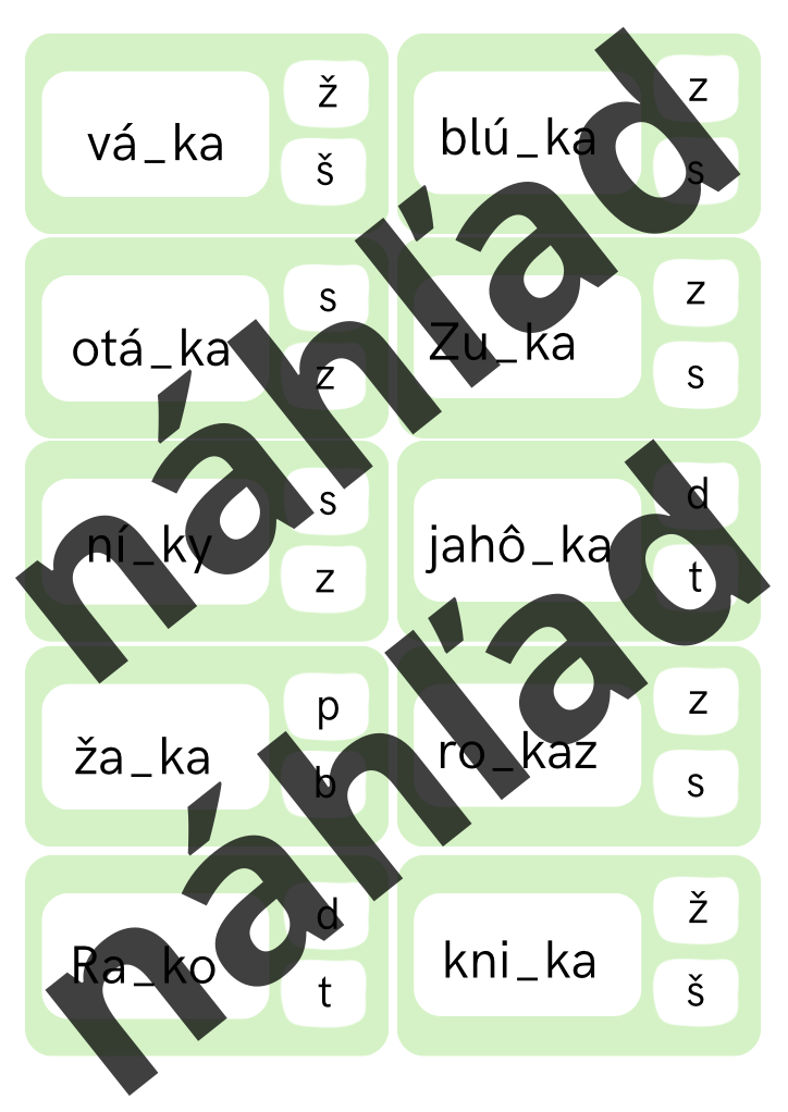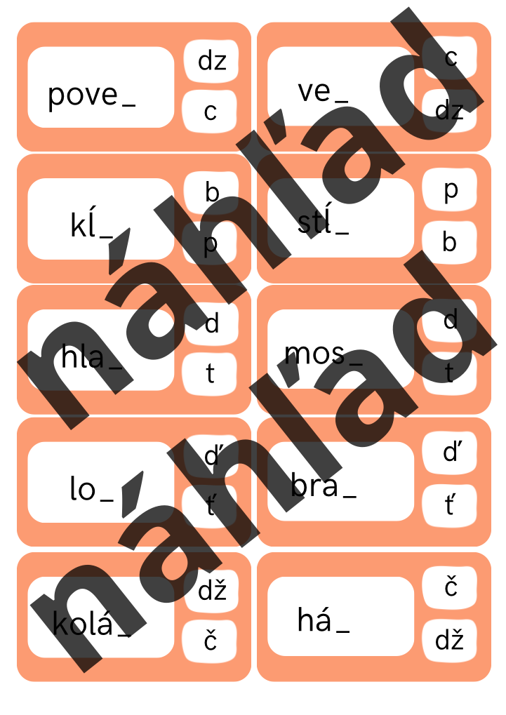 Spodobovanie nemusí byť nuda. Tento hravý materiál vo forme štipcovačky ponúka žiakom možnosť aktívne premýšľať, porovnávať a rozhodovať sa. Päť strán plných slov so spodobovaním na začiatku, v strede aj na konci slova pomáha upevniť pravopis prirodzene, bez zbytočného písania. Stačí vybrať správnu možnosť, zaštipcovať alebo zapinkovať a učiť sa zážitkovo. Ideálna aktivita na precvičovanie, opakovanie aj rýchlu prácu pre hotových žiakov.