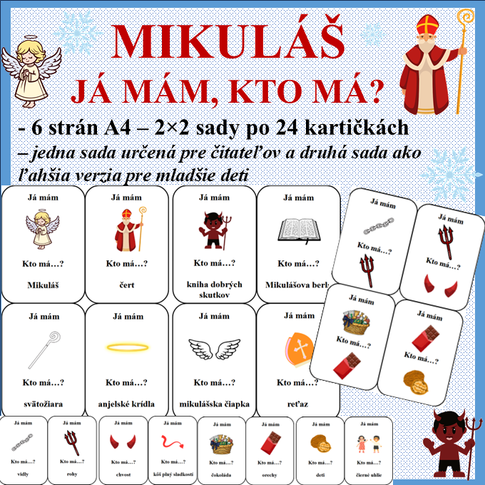 Vďaka hre „Ja mám… Kto má…?“ si spestríte vyučovanie, uvediete deti do témy o Mikulášovi a hravou formou s nimi precvičíte čítanie, pozornosť, postreh a spoluprácu v skupine.
