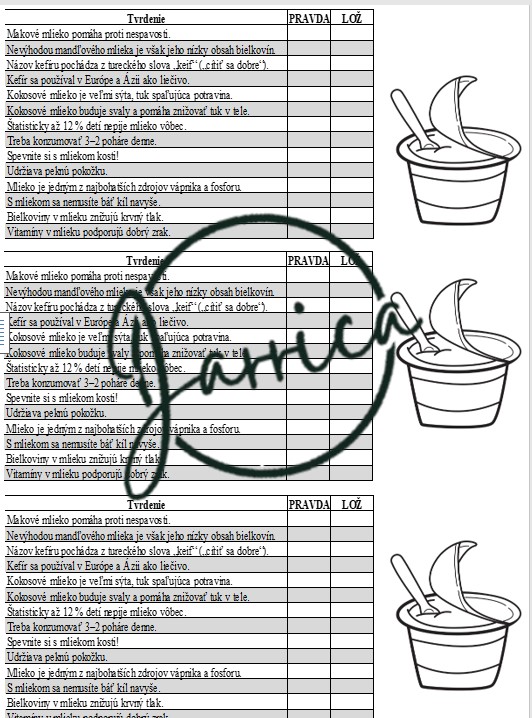 - 14 tvrdení o mlieku (na triedenie PRAVDA/LOŽ)