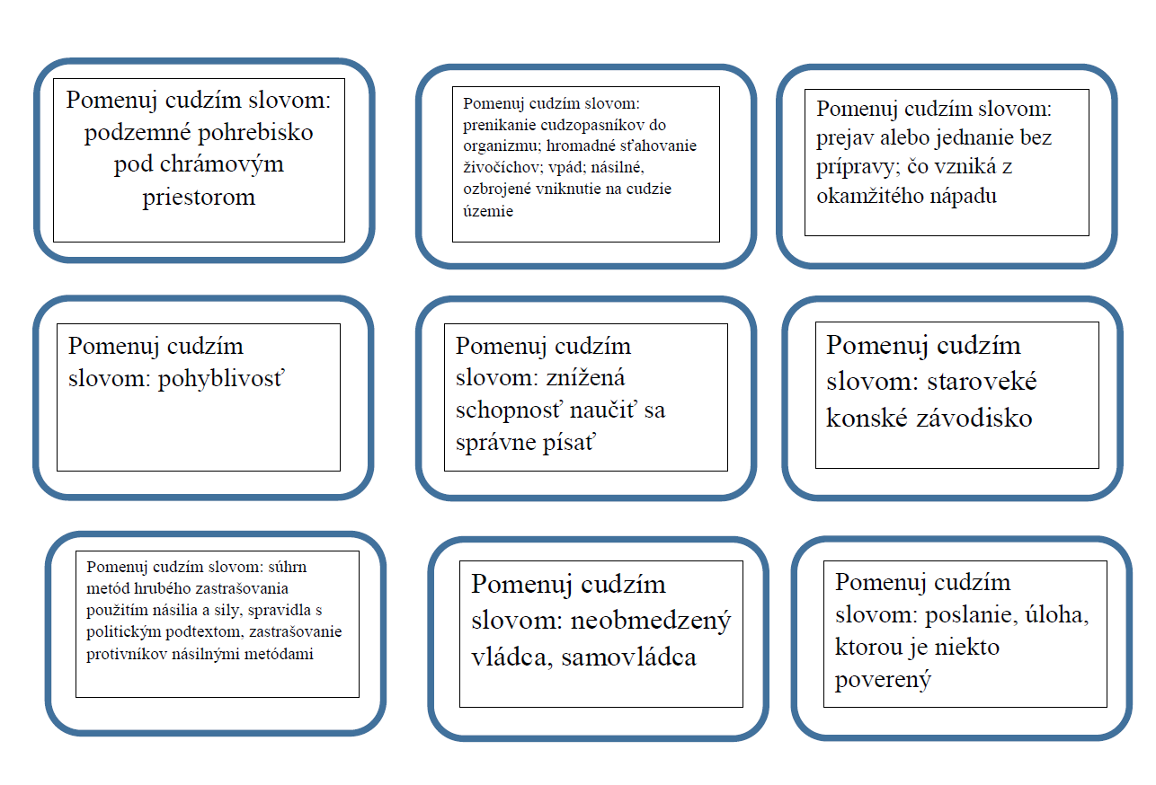 - ako opakovanie učiva o cudzích slovách na konci tematického celku,