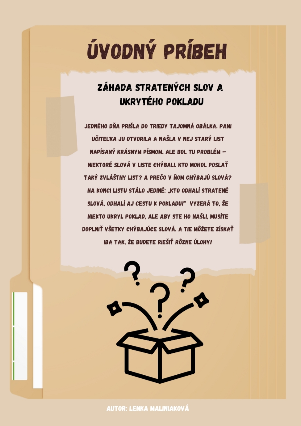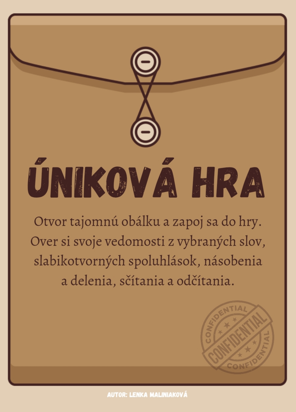 Dobrý deň, ponúkam Únikovú hru pre tretí ročník. Hra obsahujú pracovné listy, pomôcky, metodický postup hry a správne riešenia. Úlohou žiakov je vyriešiť úlohy v stanovištiach a odhaliť tajomstvo, vďaka, ktorému uniknú z hry.