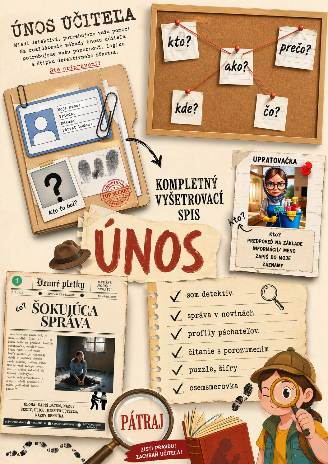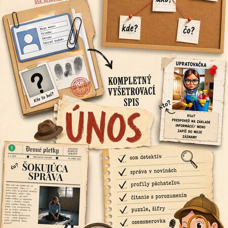 - materiál: Únos je skvelým zábavným materiálom, ktorý rozvíja čitateľskú gramotnosť, prácu so šiframi, čítanie s porozumením, analytické schopnosti