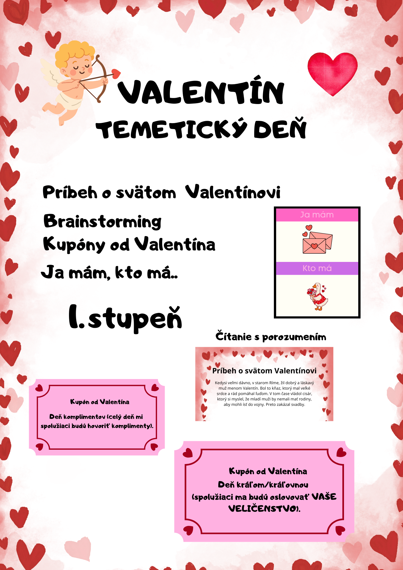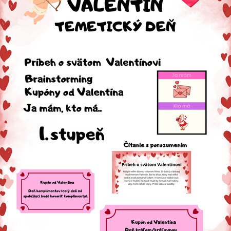 Valentín - čítanie s porozumením, kupóny, ja mám, kto má..