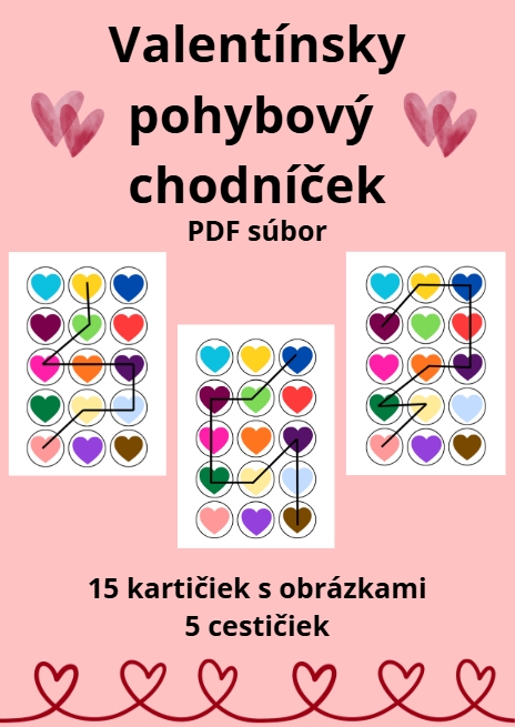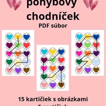 Zábavná a hravá aktivita, ktorá spája pohyb, sústredenie a učenie hrou. Chodníček obsahuje 23 farebných srdiečok a 5 cestičiek s návodom, podľa ktorých dieťa kráča po správnej trase.