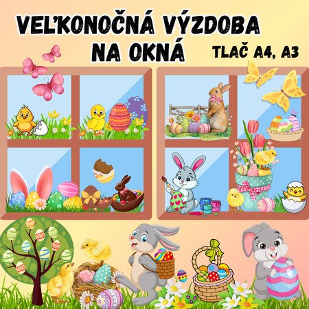 - Súbor obsahuje veselé farebné veľkonočné obrázky, ktoré sú vhodné ako výzdoba na okná v triedach, chodbách alebo na nástenku. Obrázky, ktoré sa nachádzajú v náhľade, sú tiež súčasťou súboru.