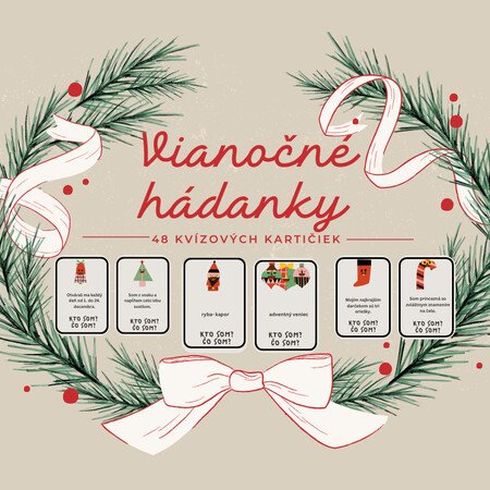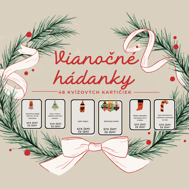 - Tento hravý vianočný materiál prináša súbor komunikačných kartičiek s hádankami, kvízom, v ktorých žiaci pomocou otázok typu kto som / čo som odhaľujú ukryté vianočné postavy, symboly, tradície či predmety.