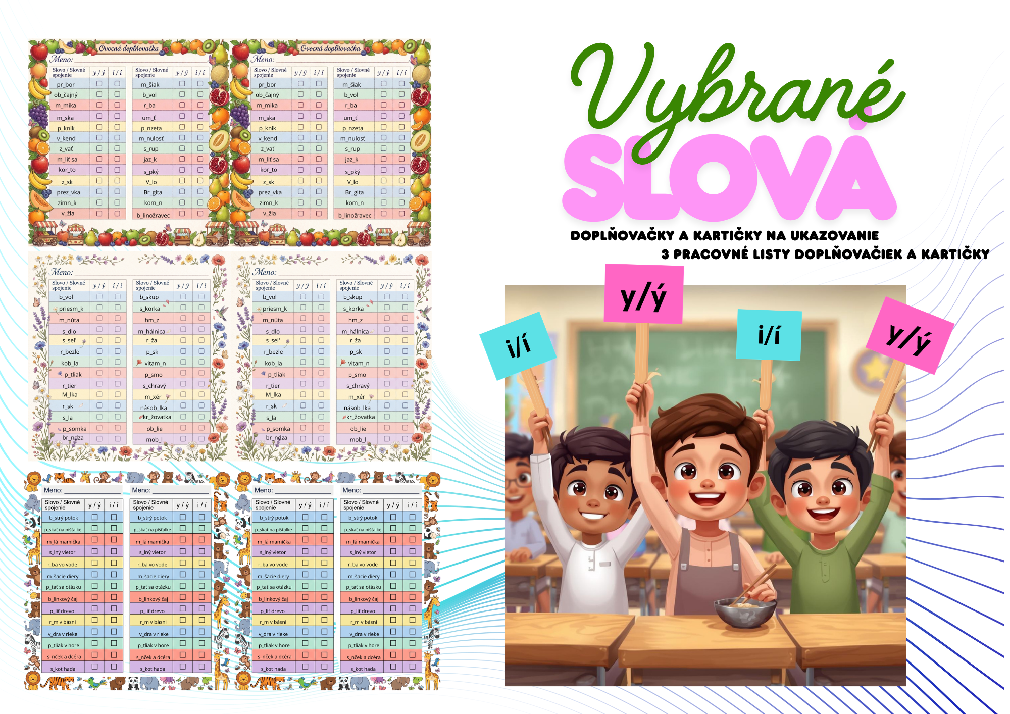 Kolegovia, pripravila som pre svojich žiakov sadu materiálov na precvičovanie vybraných slov a i/y, ktoré vnesú do triedy hravosť a systém. 🎨