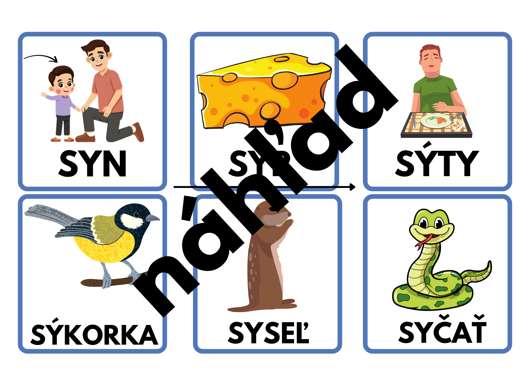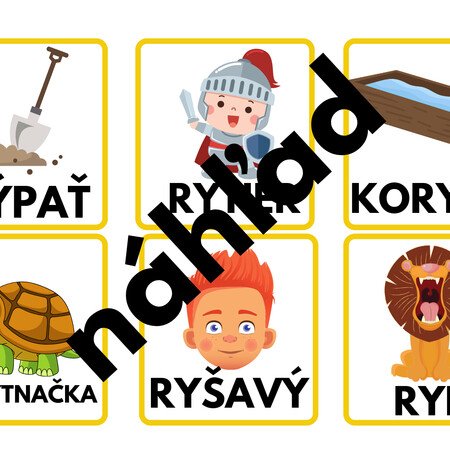 Kartičky sú vhodné na precvičenie vybraných a príbuzných - odvodených slov. Kartičky je potrebné strihať a zalaminovať. Môžete ich používať tak, že k vybranému slovu deti priradzujú slová príbuzné. Vybrané slová sú vytriedené farebne napr. vybrané slová po b - čierny rám, po r - žltý rám. Kartičiek je 173 ks.