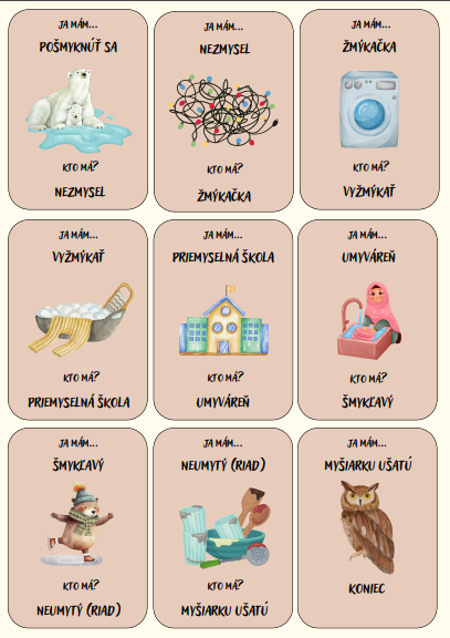 Súčasťou súboru sú aj doplňovacie kartičky (odvodené vybrané slová), ktoré môžete jednoducho vložiť do aktivity a budú tak dotvárať jej rozšírenú a náročnejšiu verziu Ako začleniť tieto doplňujúce kartičky do aktivity podrobne opisujem v metodike.