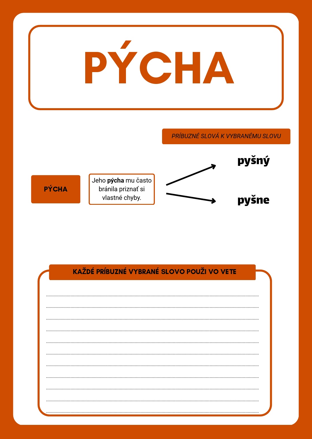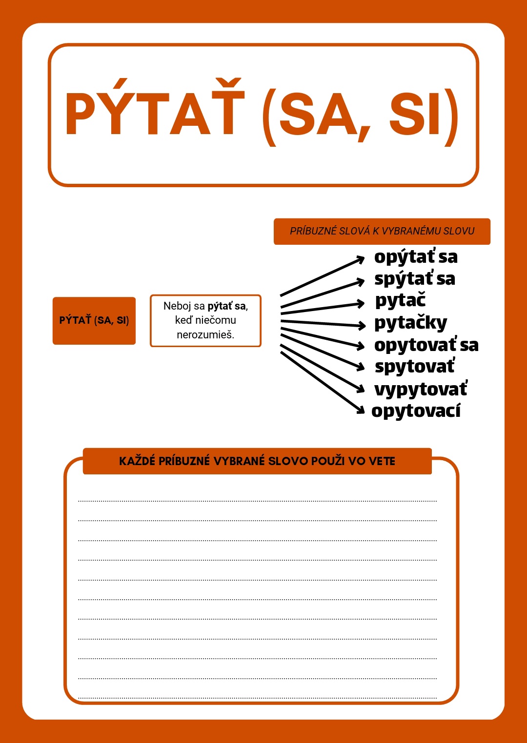 Dobrý deň, ponúkam pracovné listy zamerané na vybrané slová a ich odvodené slová. Práca s pracovnými listami upevňuje a osvojuje vybrané slová a rozširuje žiakom slovnú zásobu o odvodené vybrané slová.