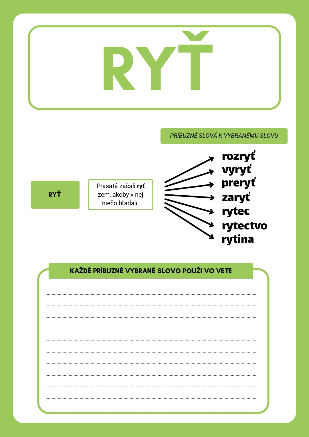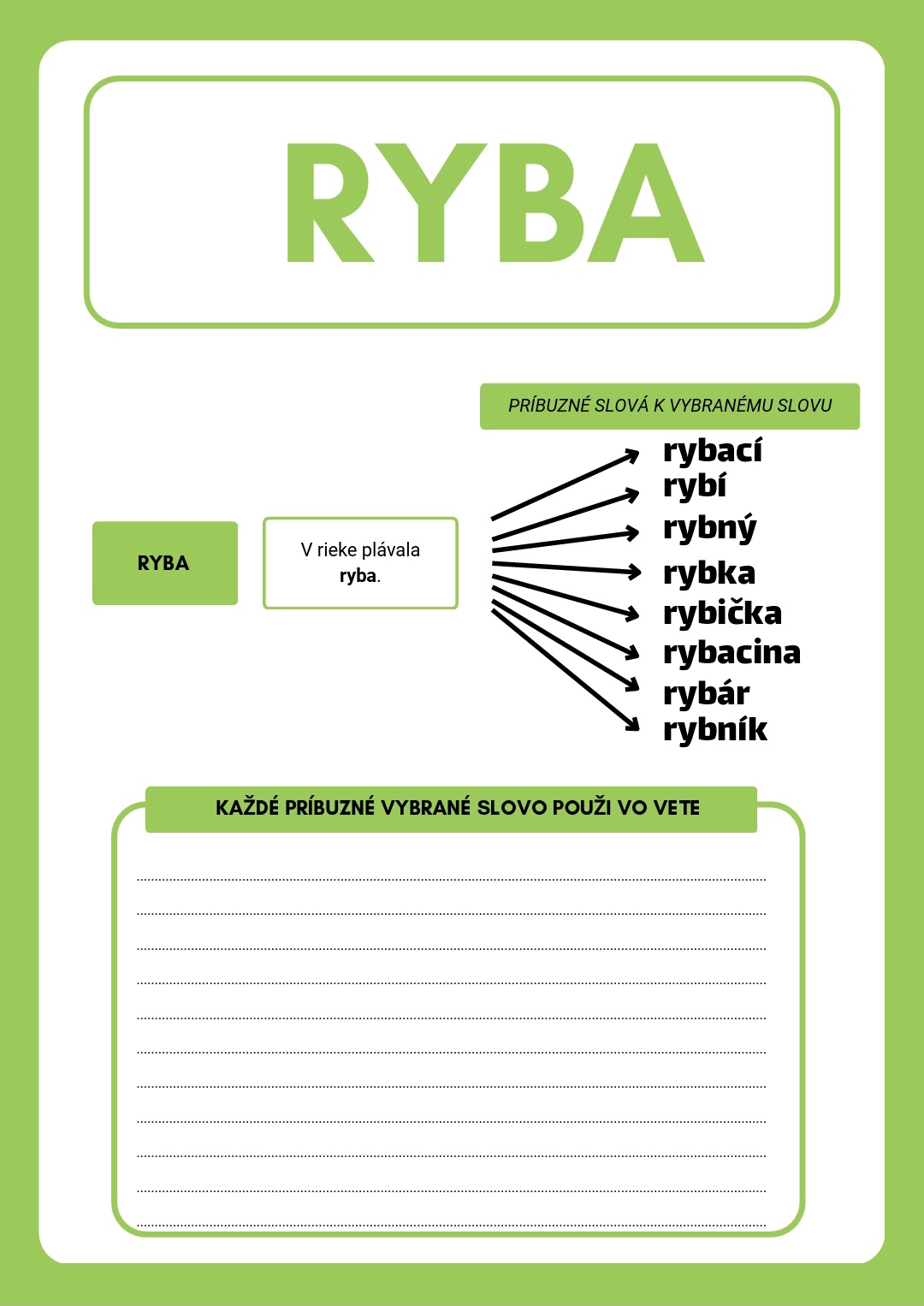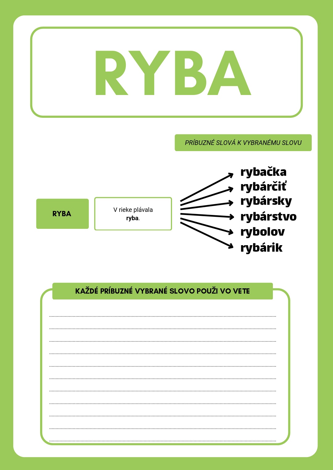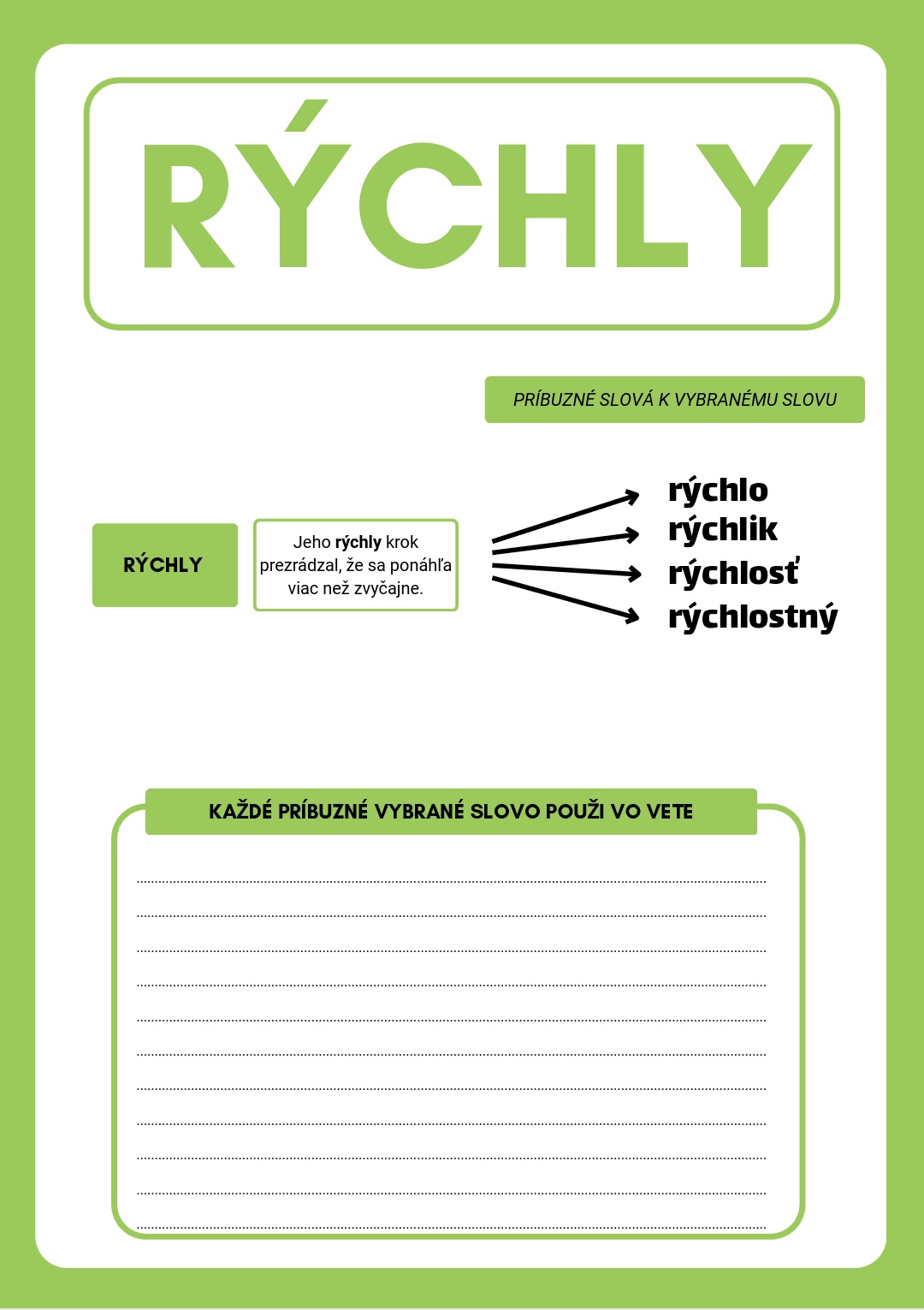 Dobrý deň, ponúkam pracovné listy zamerané na vybrané slová a ich odvodené slová. Práca s pracovnými listami upevňuje a osvojuje vybrané slová a rozširuje žiakom slovnú zásobu o odvodené vybrané slová.