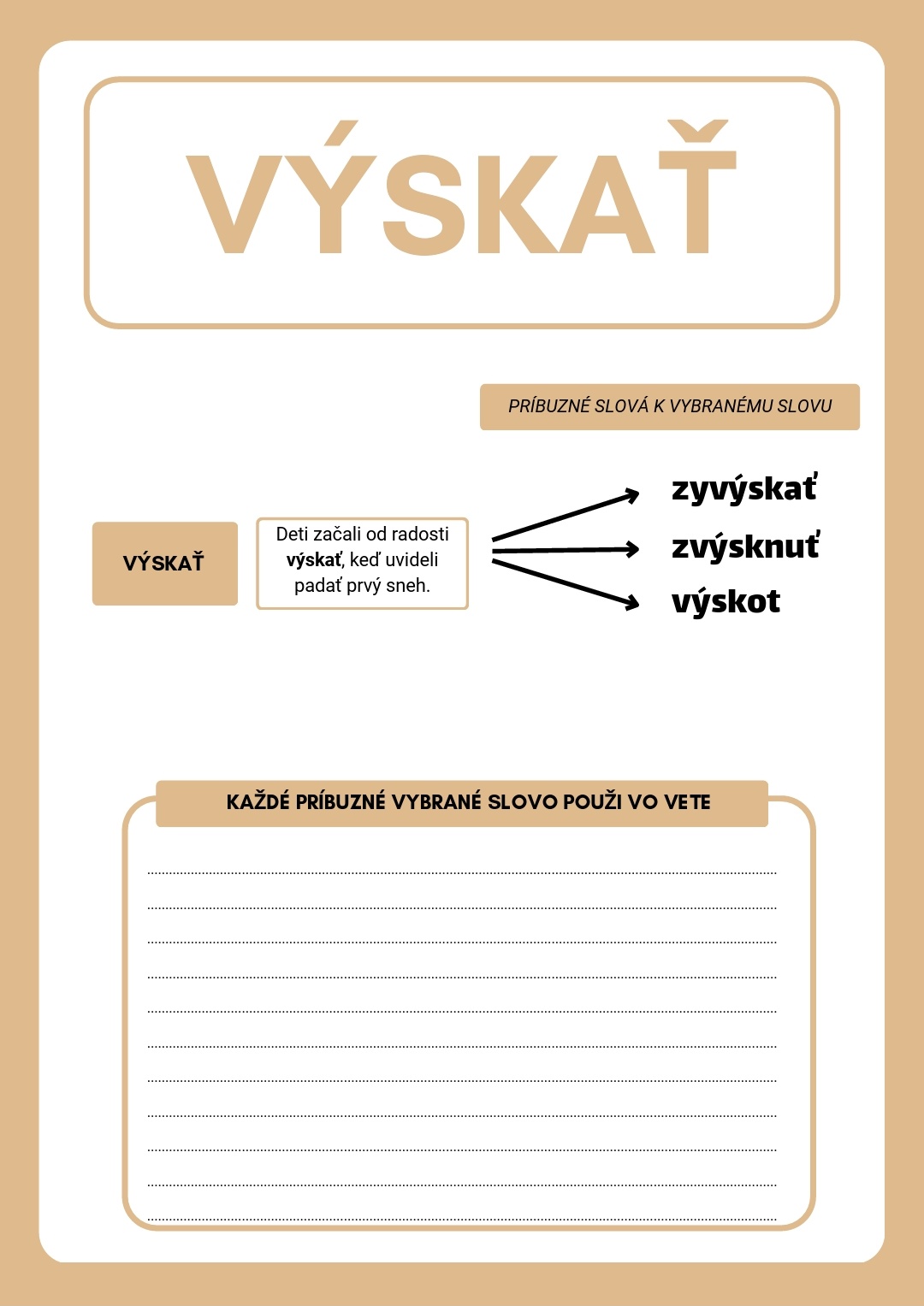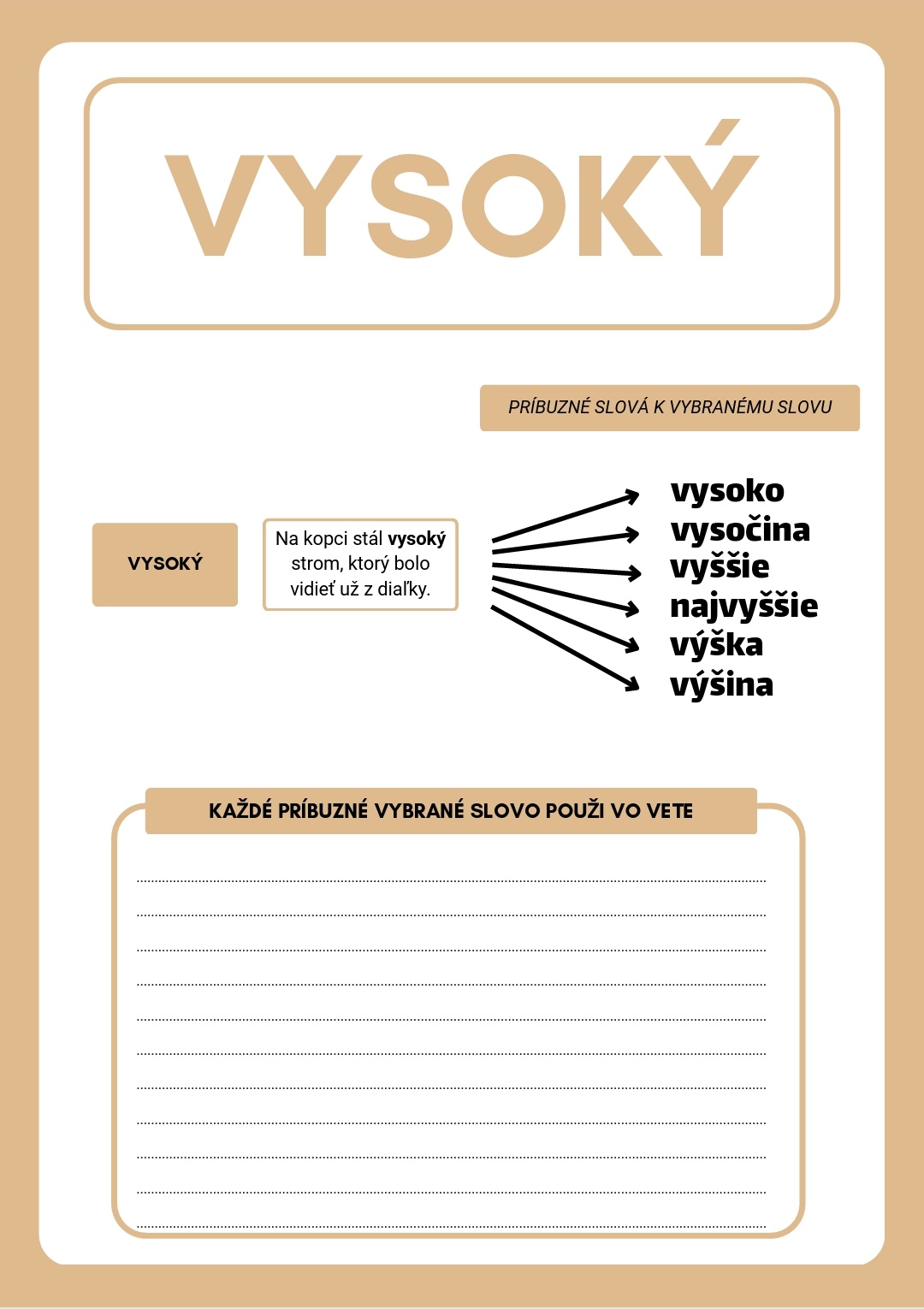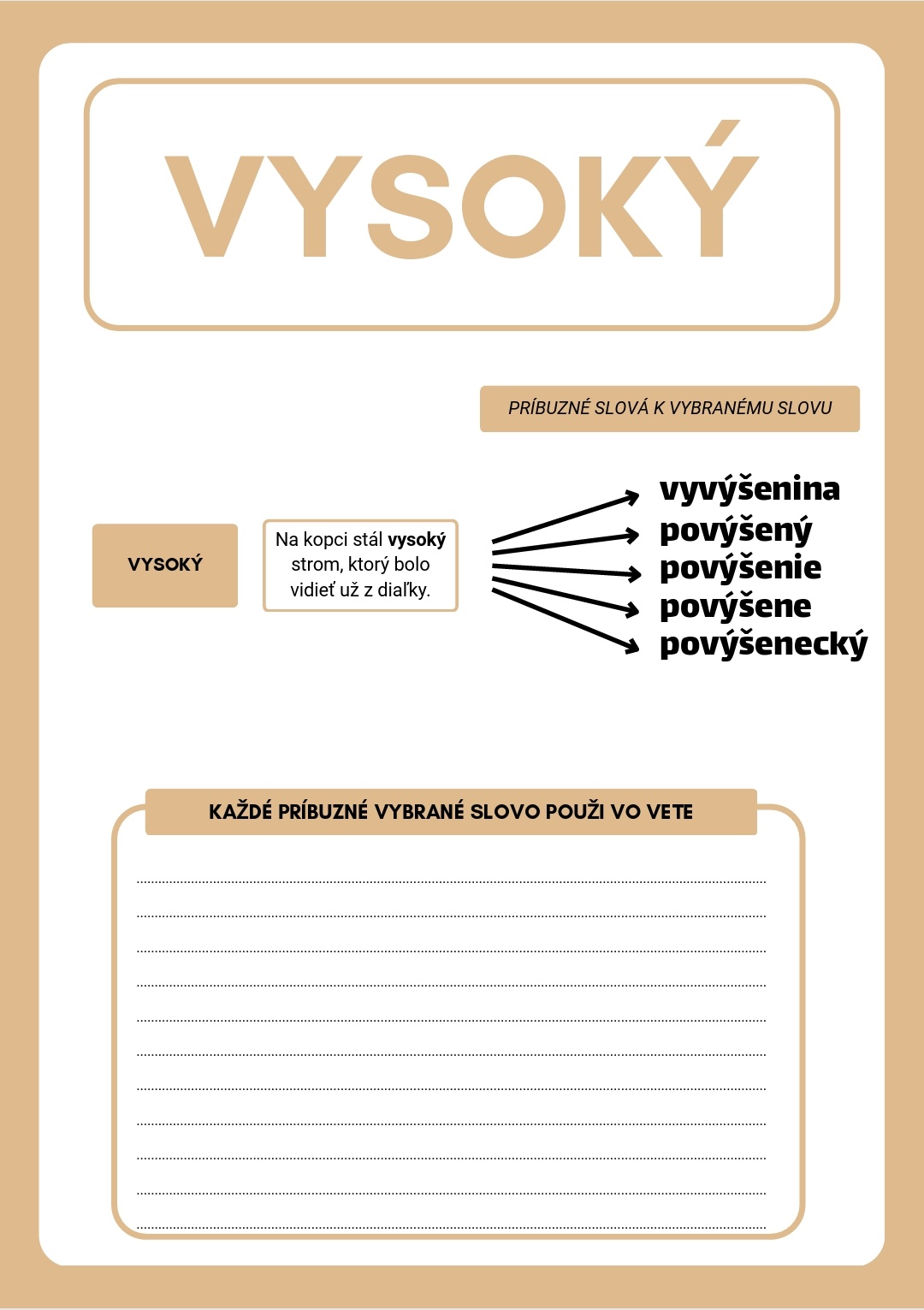 Dobrý deň, ponúkam pracovné listy zamerané na vybrané slová a ich odvodené slová. Práca s pracovnými listami upevňuje a osvojuje vybrané slová a rozširuje žiakom slovnú zásobu o odvodené vybrané slová.