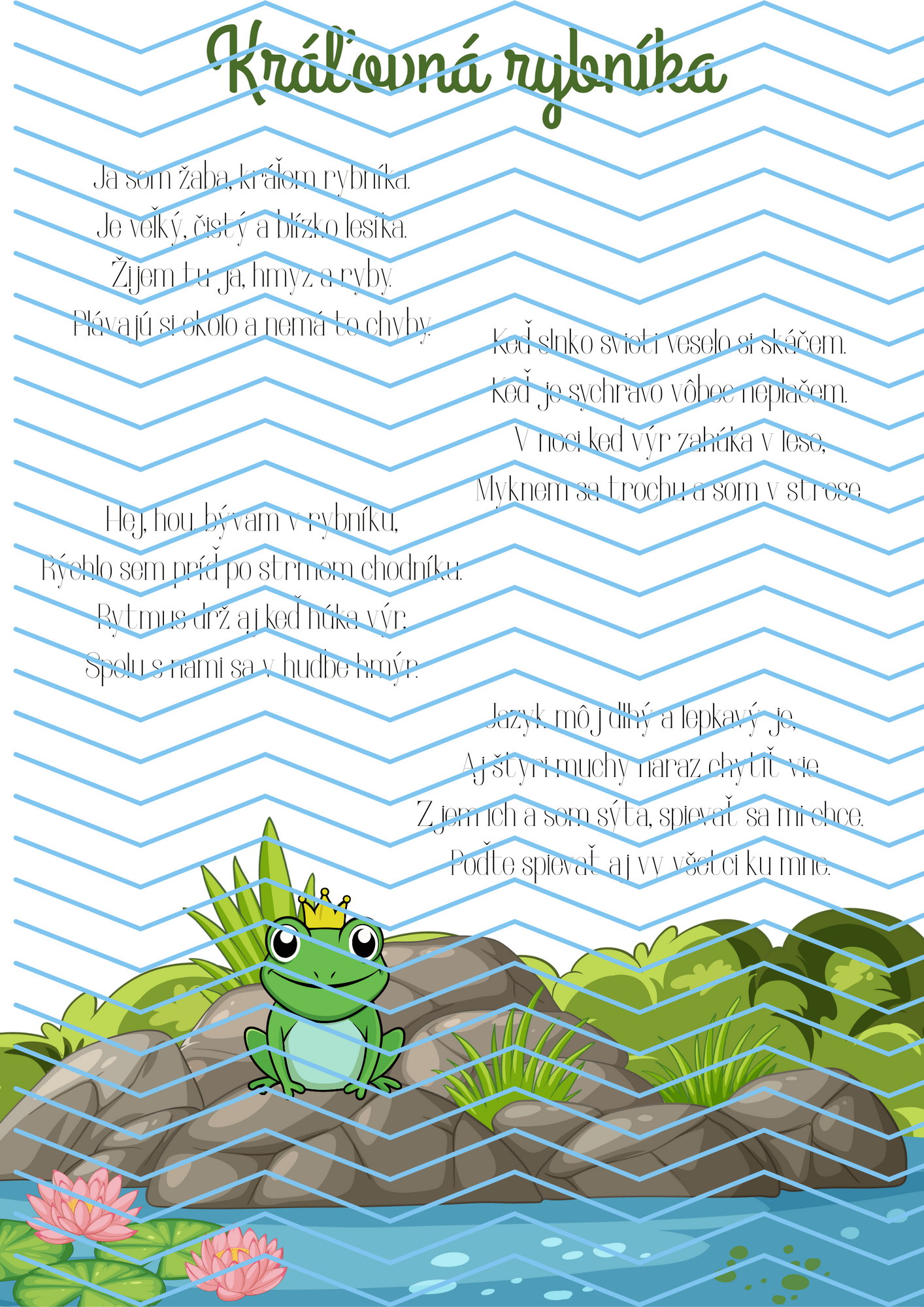 BONUS: Pomóóc, žaba raperka zabudla slová svojej pesničky. Pomôž jej ich doplniť, nech sa nestrápni na svojom vystúpení. Pracovný list môže byť použitý na opakovanie koncoročného tretiackeho učiva o ohybných slovných druhoch a vybraných slovách alebo ako hravý úvod vo štvrtok ročníku. Žiaci majú dopĺňať slová podľa zadania alebo môžu v texte vyhľadávať a vyfarbovať podľa pokynov. Na záver im môžete pustiť žabkinu pieseň.