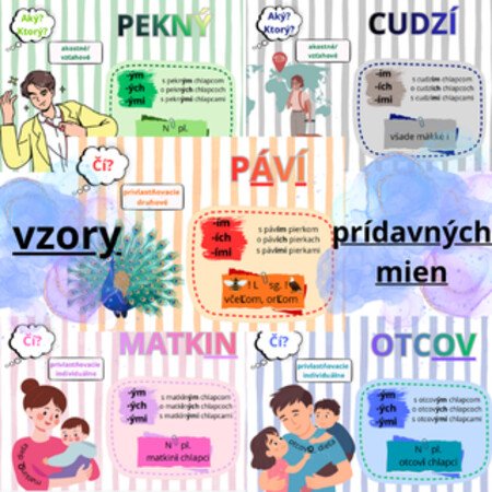 V súbore nájdete vzory prídavných mien: