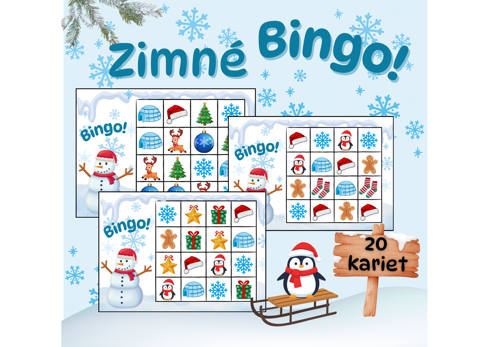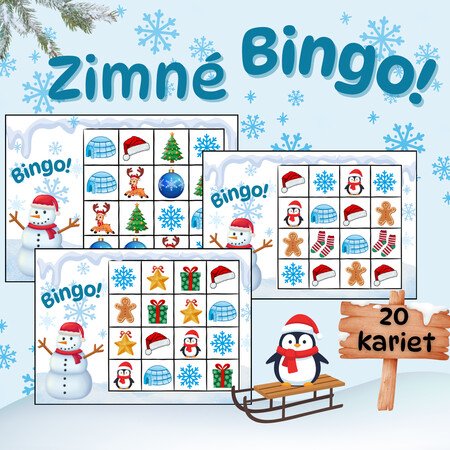 ❄️ Zimné Bingo – 20 kariet plných zimnej zábavy! ❄️