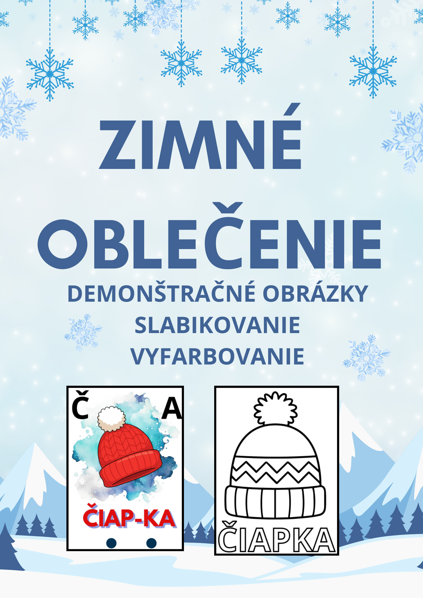 Súbor obsahuje sadu obrázkov a omaľovaniek zimného oblečenia, ktoré sú určené k rozvíjaniu oblasti Jazyk a komunikácia - VŠ: Rozčlení zvolené slová na slabiky a VŠ: Identifikuje niektoré písmená abecedy.